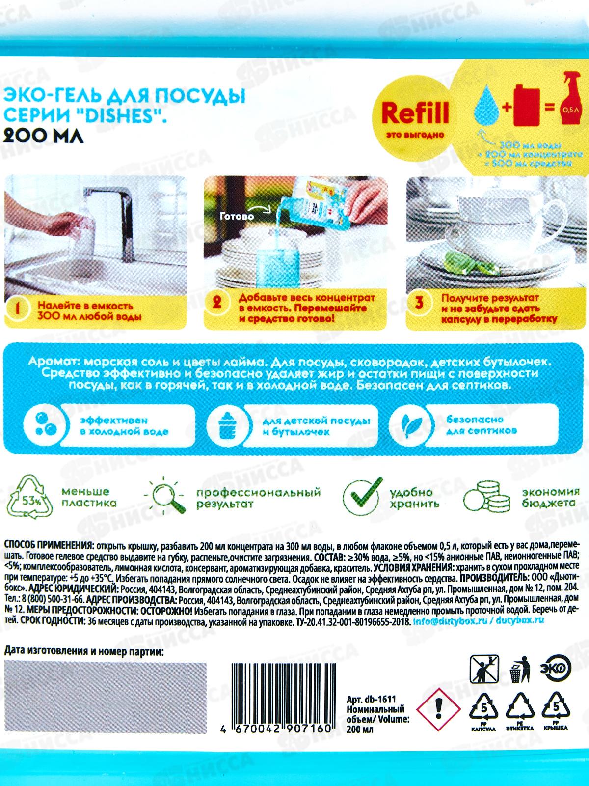 Dutybox Эко-гель для посуды концентрат Морская соль и цветы лайма 200мл,1611