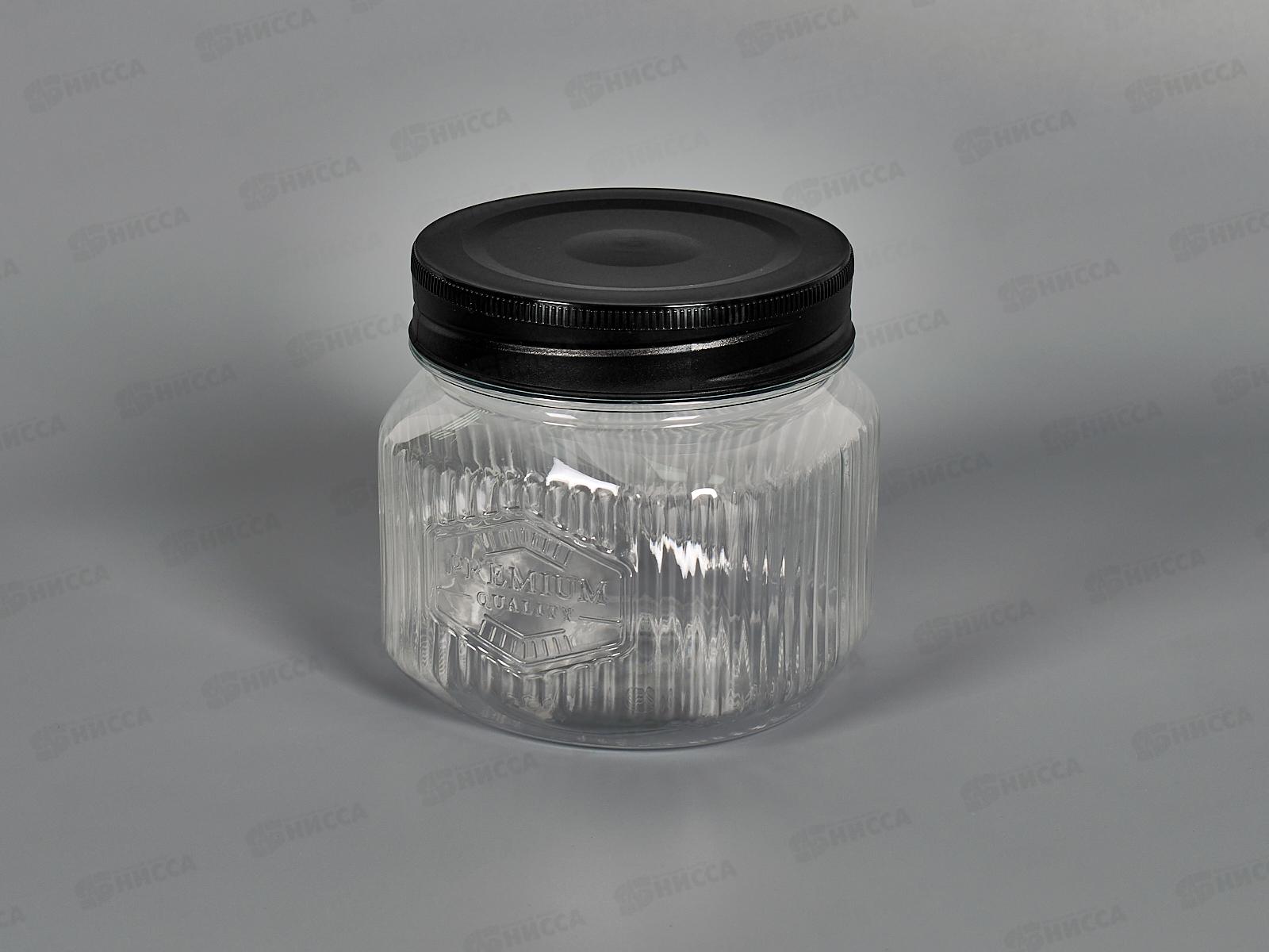 Банка квадратная с рельефом и эмбоссингом Premium 0,6л черный 440300313 *12 БП