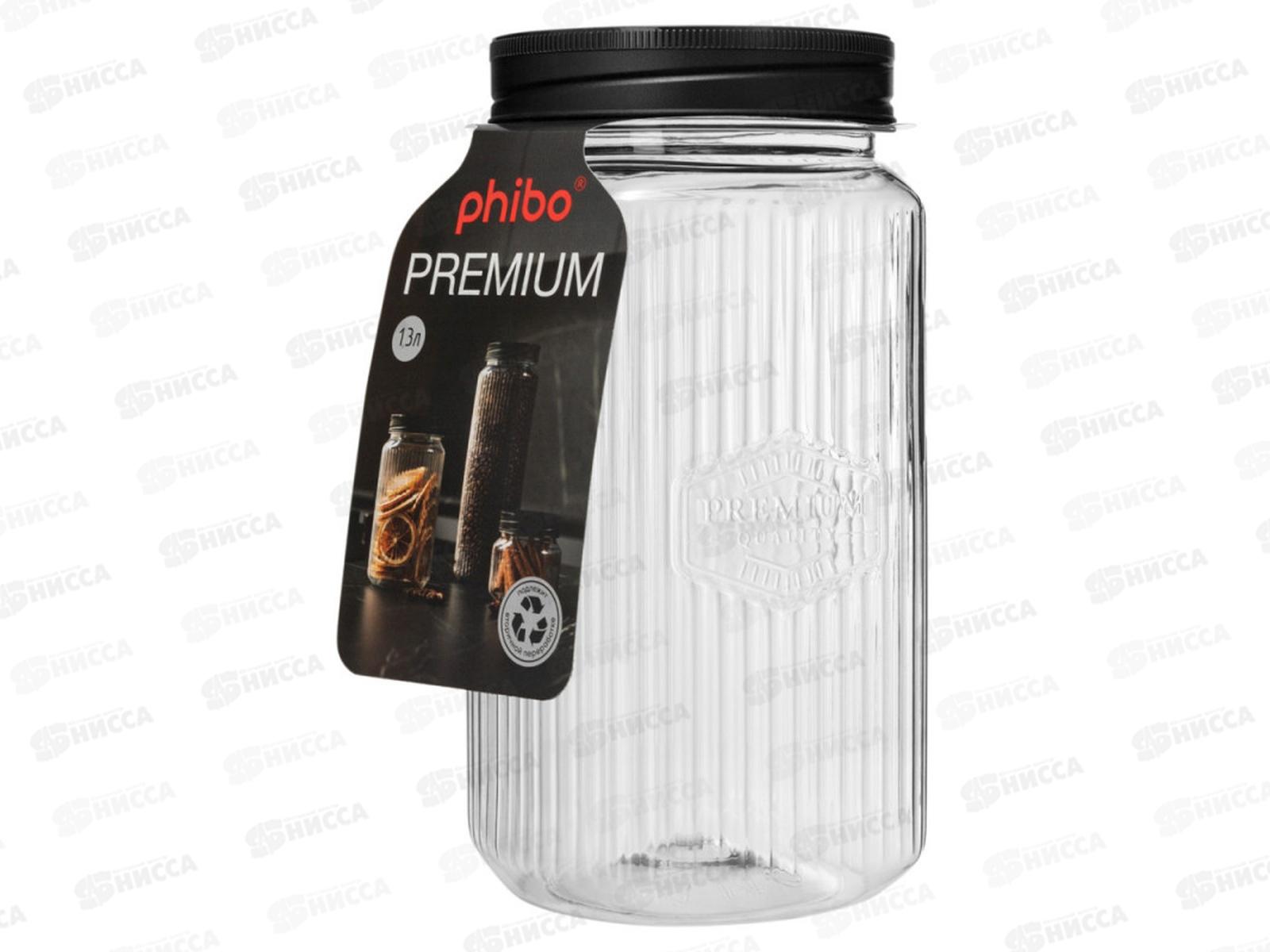 Банка квадратная с рельефом и эмбос Premium 1,3л черный 440200313 БП