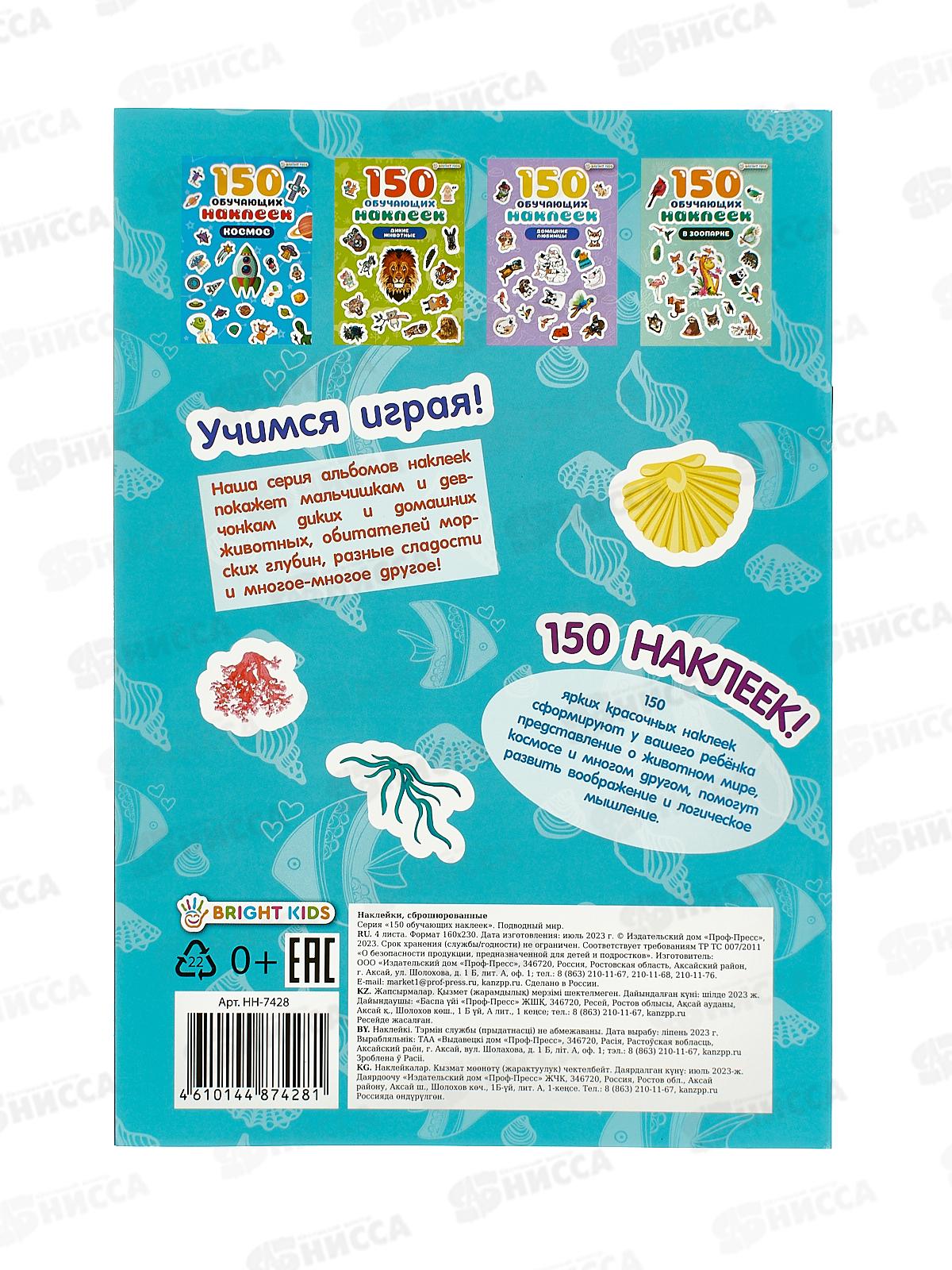 Обучающие наклейки ПП Подводный мир 150шт НН-7428 4л