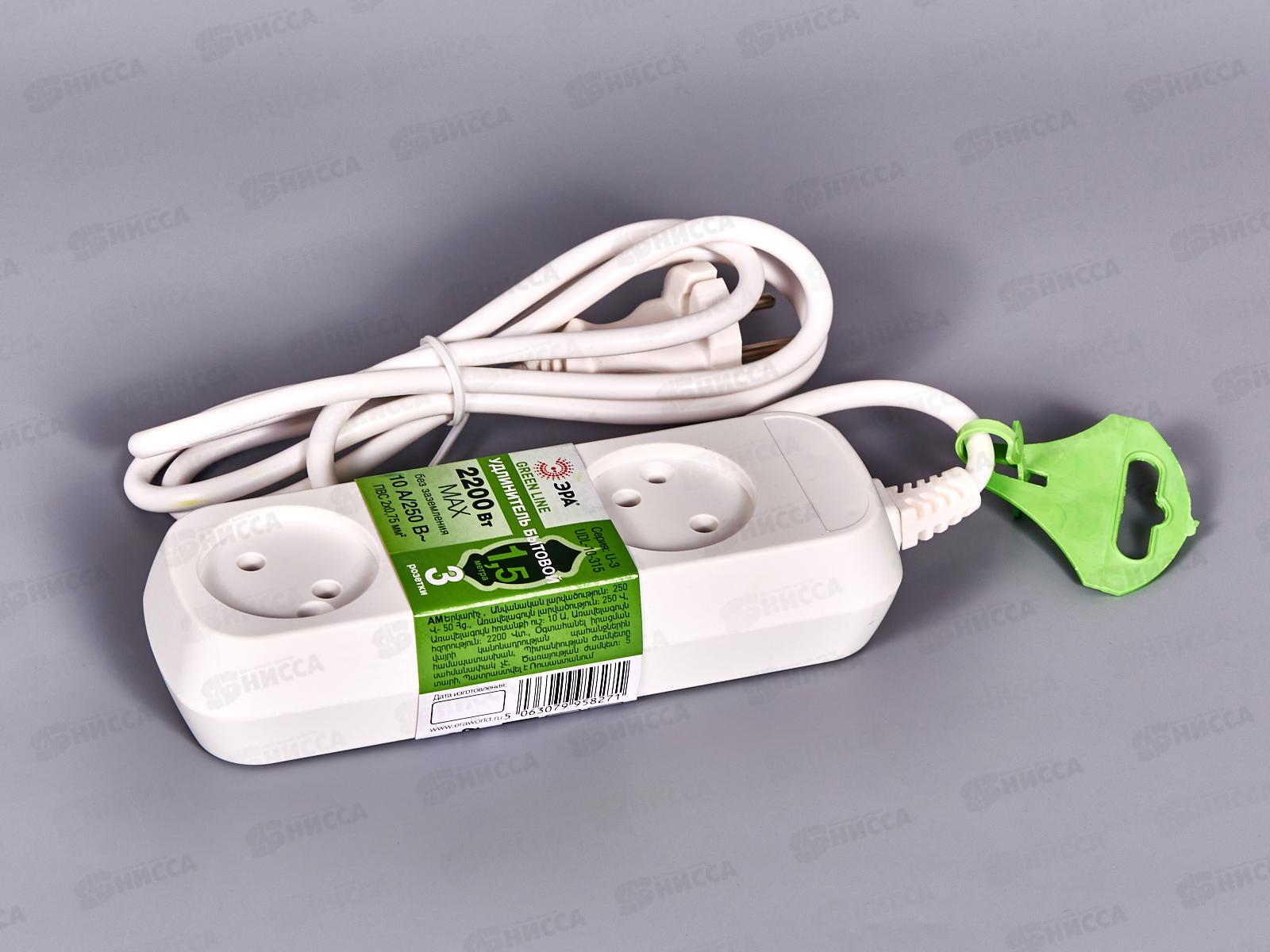 Удлинитель GREEN LINE 1.5м 3 гнезда, без заземления, ПВС 2*0.75, UDL-10-315 *20