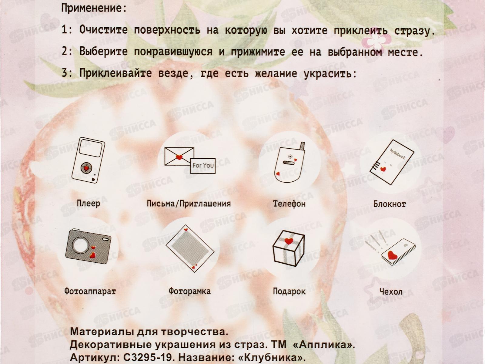 Стразы декоративные Апплика Клубника,С3295-19 *20