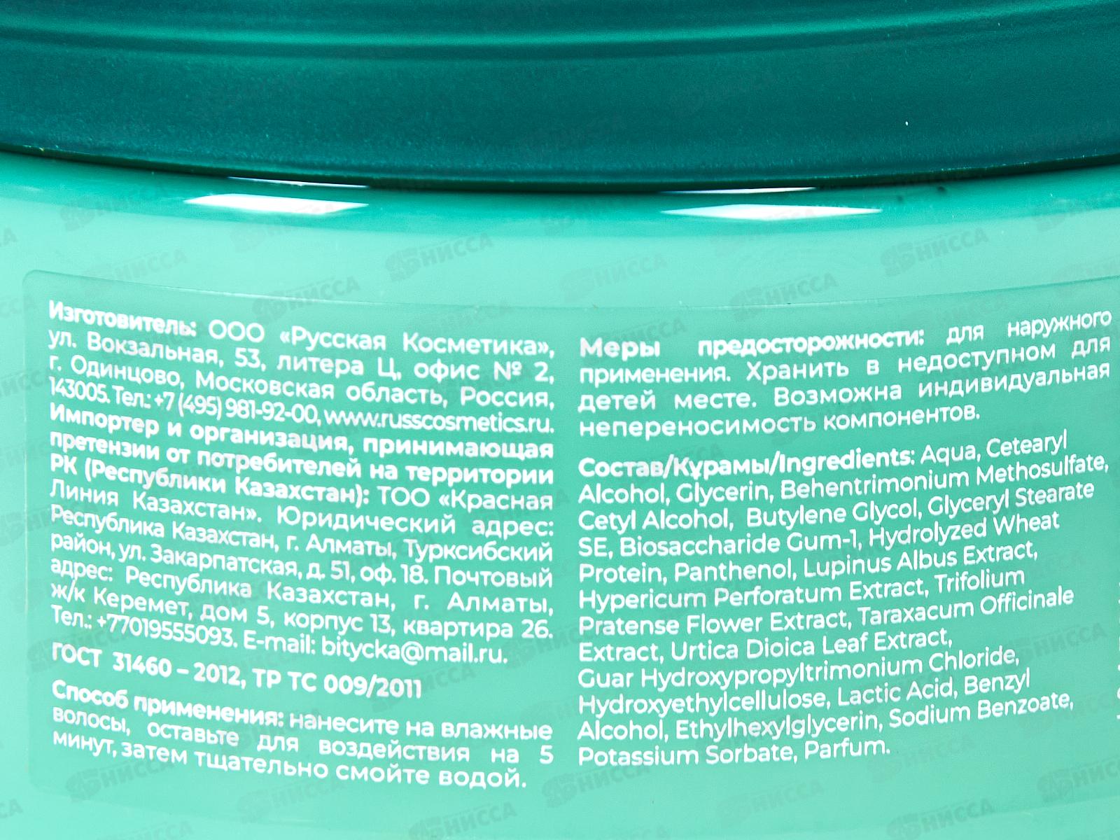 Состав: вода, цетеариловый спирт, глицерин, метосульфат бегентримония, цетиловый спирт, бутиленгликоль, стеарат глицерила SE, биосахаридная камедь-1, гидролизованный белок пшеницы, пантенол, экстракт люпина белого, экстракт зверобоя продырявленного, экстракт цветков клевера лугового, экстракт одуванчика лекарственного, экстракт листьев крапивы двудомной, хлорид гуаргидроксипропилтримония, гидроксиэтилцеллюлоза, молочная кислота, бензиловый спирт, этилгексилглицерин, бензоат натрия, сорбат калия, отдушка.