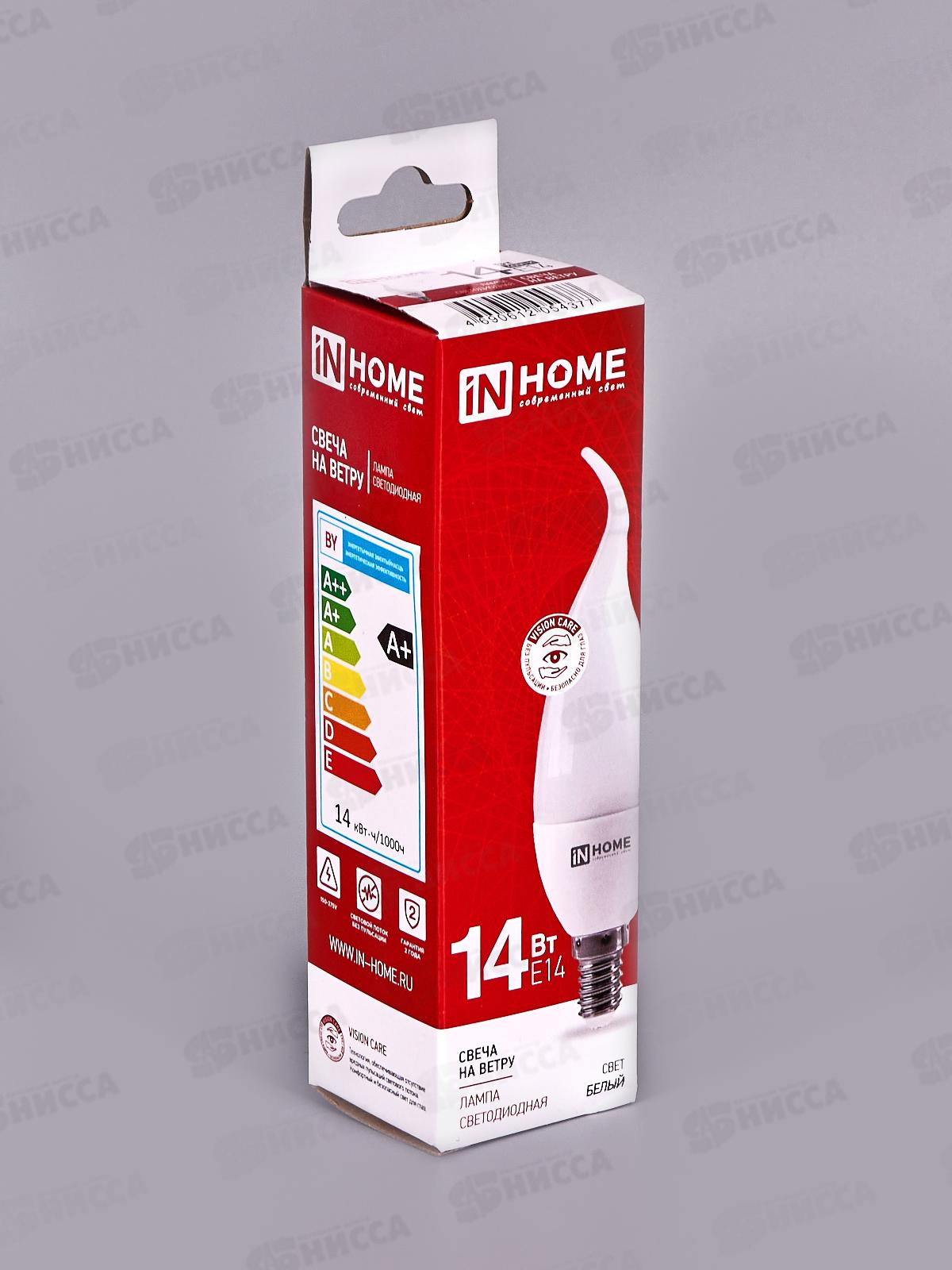 Лампа светодиодная IN HOME LED-Свеча на ветру 14Вт E14 4000К 1330Лм *50