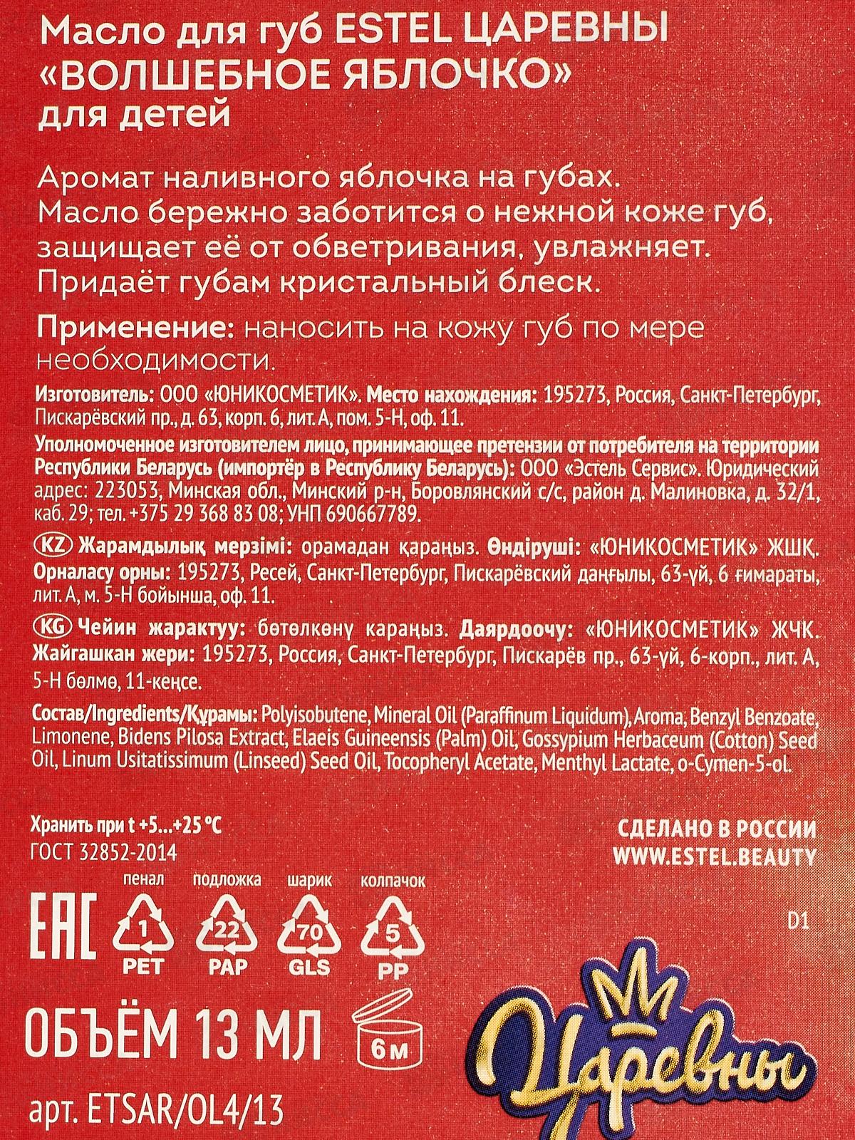 Царевны Масло для губ для детей Волшебное яблочко 13мл *10