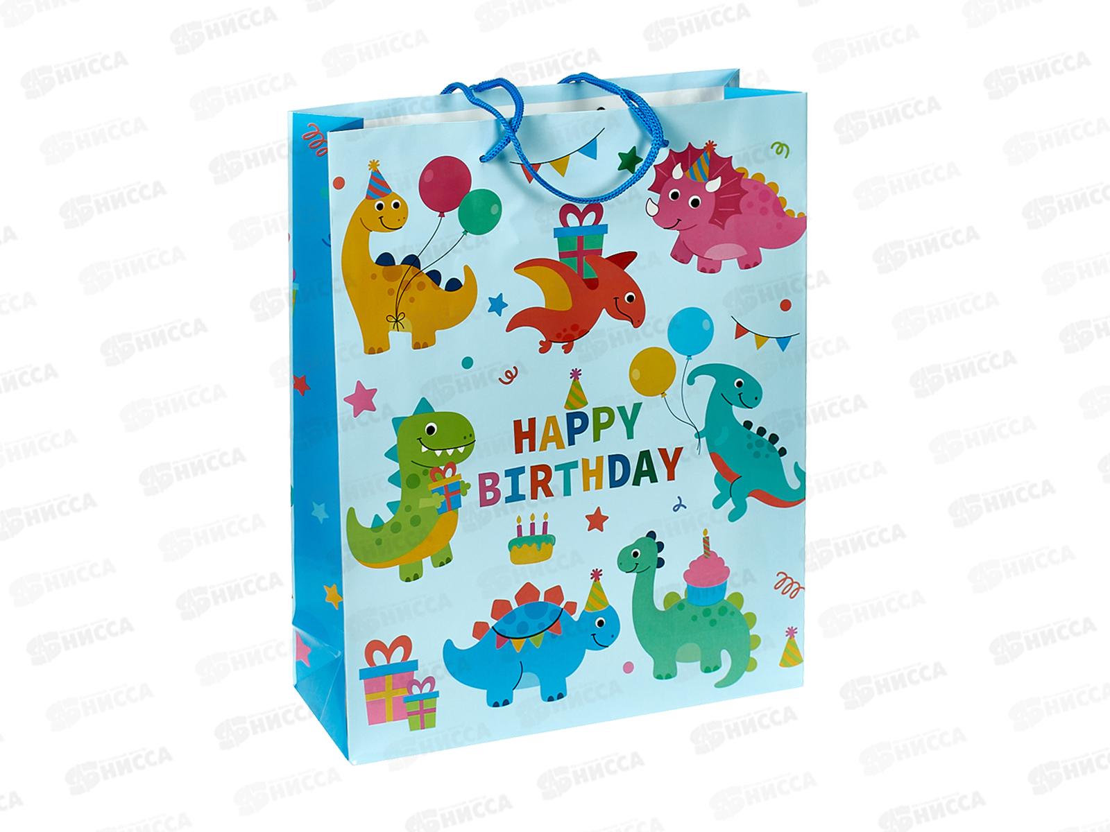 Пакет подарочный MI 26,4х32,7х8см Динозаврики, голубой ППК-4486 *12