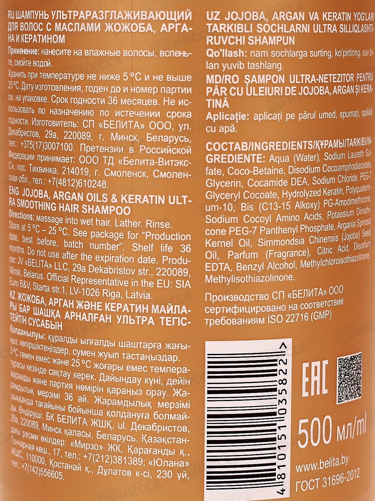 Состав: с маслом жожоба, арганы и кератином