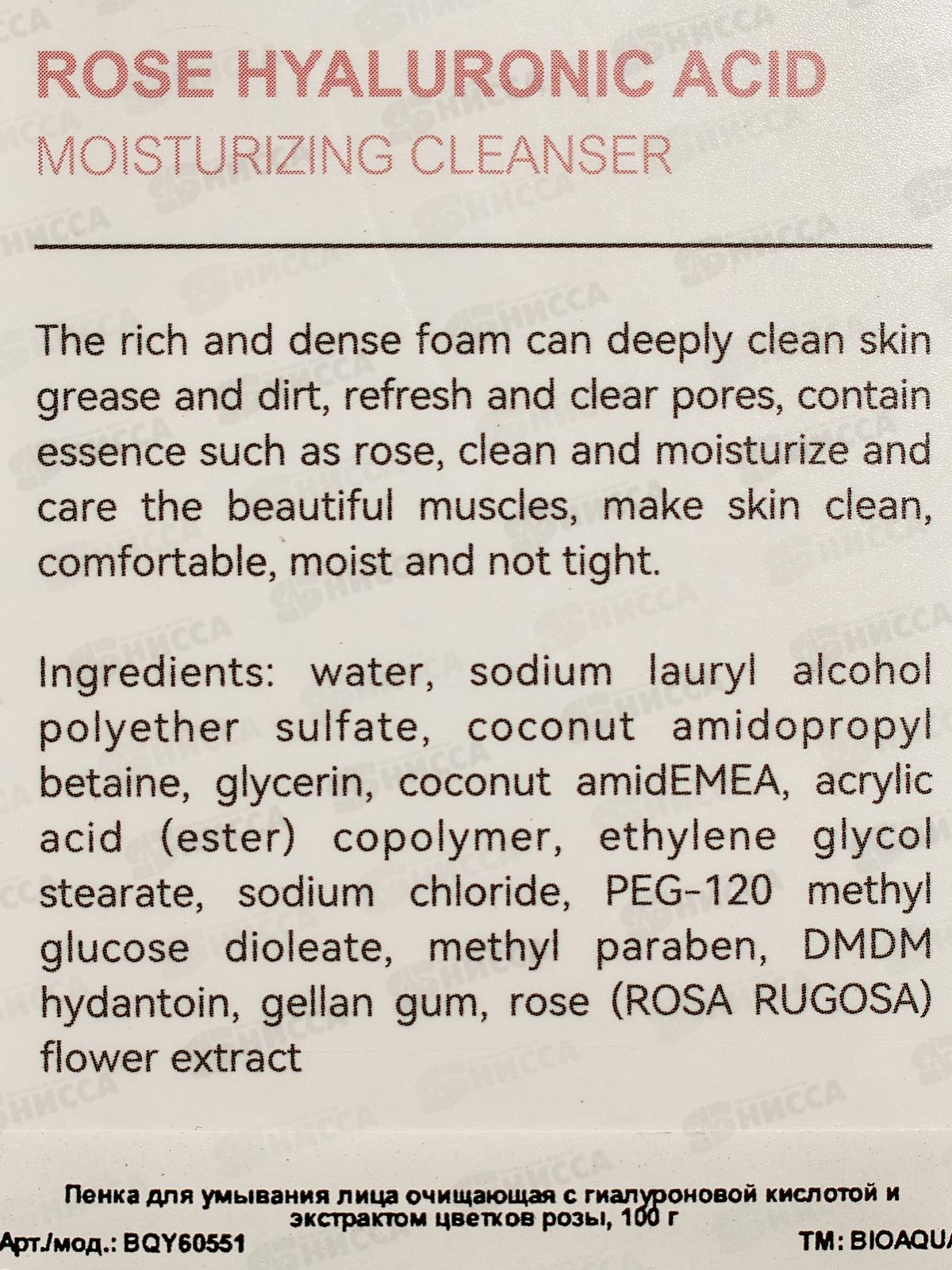 OBO Bioaqua Пенка для умывания С гиалуроном очищающая с Экстрактом Розы 100г *96