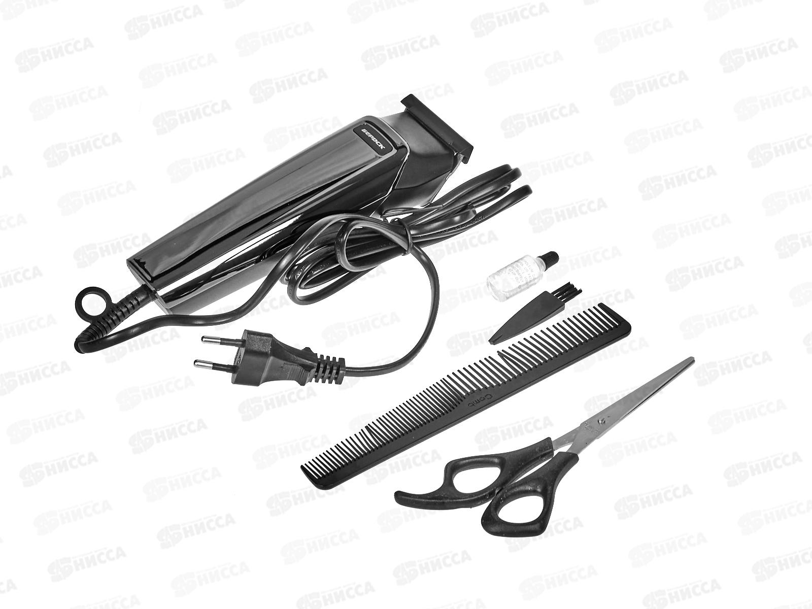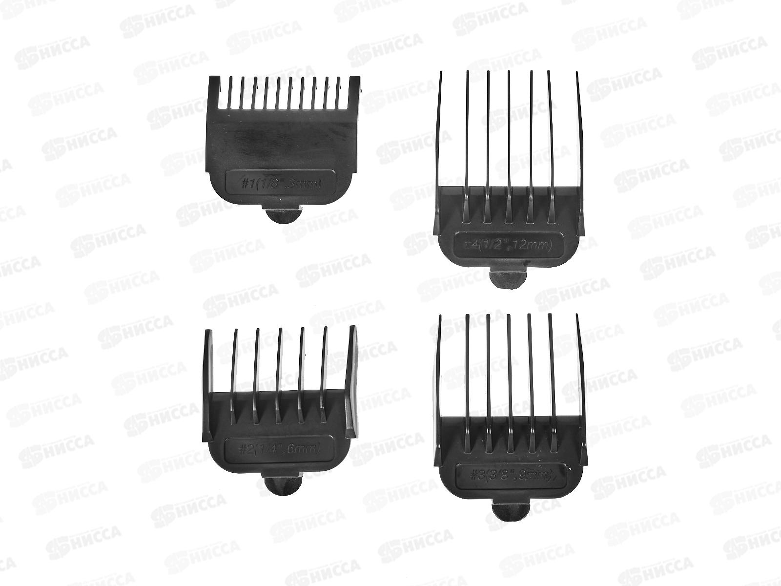 Машинка имеет рычаг для регулировки длины состригаемых волос. Имеет петлю на проводе для удобного хранения. Комплектация: машинка, насадки (3, 6,9, 12 мм), масло для смазки, кисточка, расческа-ножницы, инструкция.