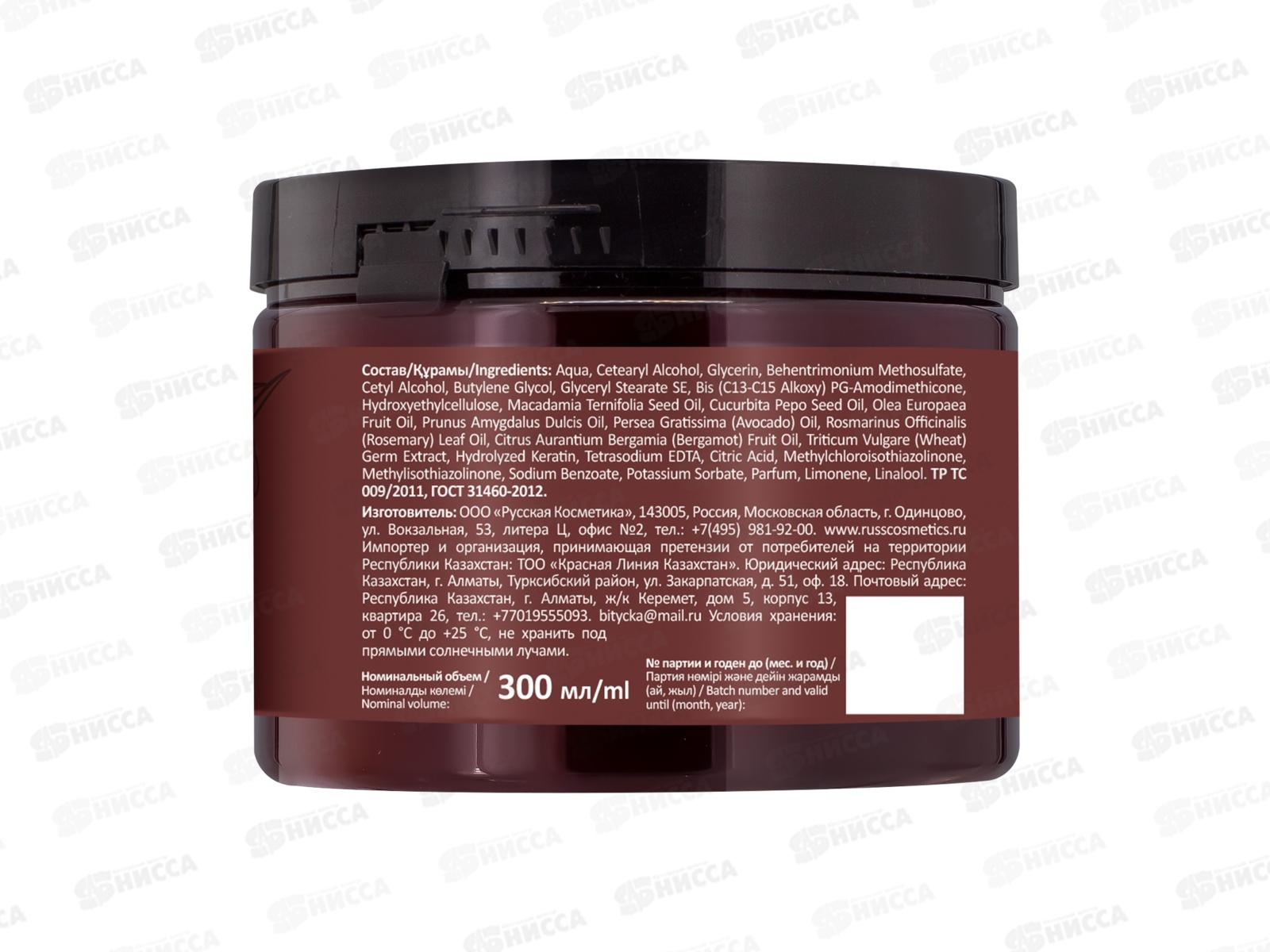 Активные компоненты: кератин, масла макадамии, семян тыквы, миндаля, оливы, авокадо, розмарина,