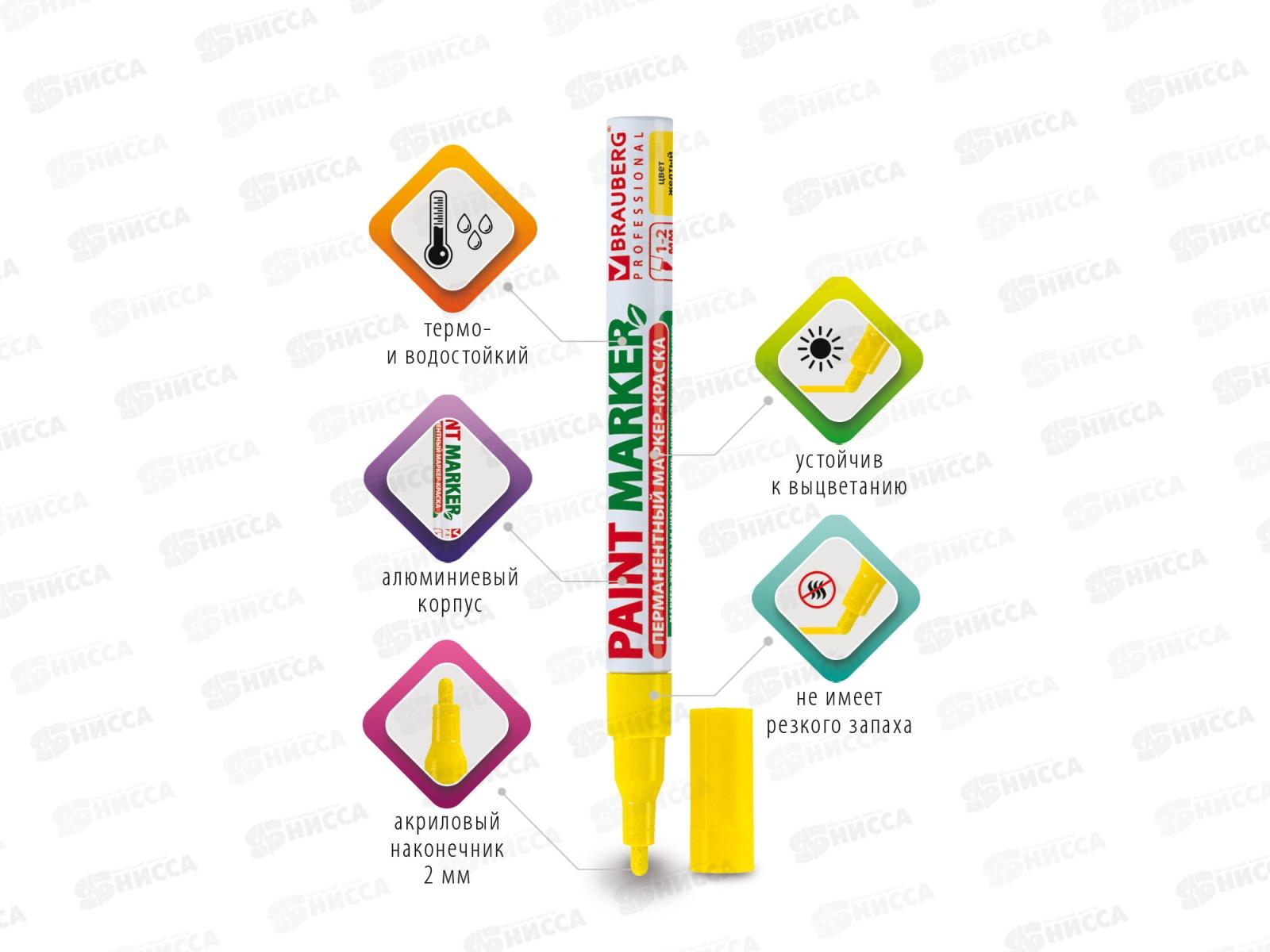 Маркер-краска BRAU лаковый желтый, 2мм б/запаха алюм.корпус 150863 *12