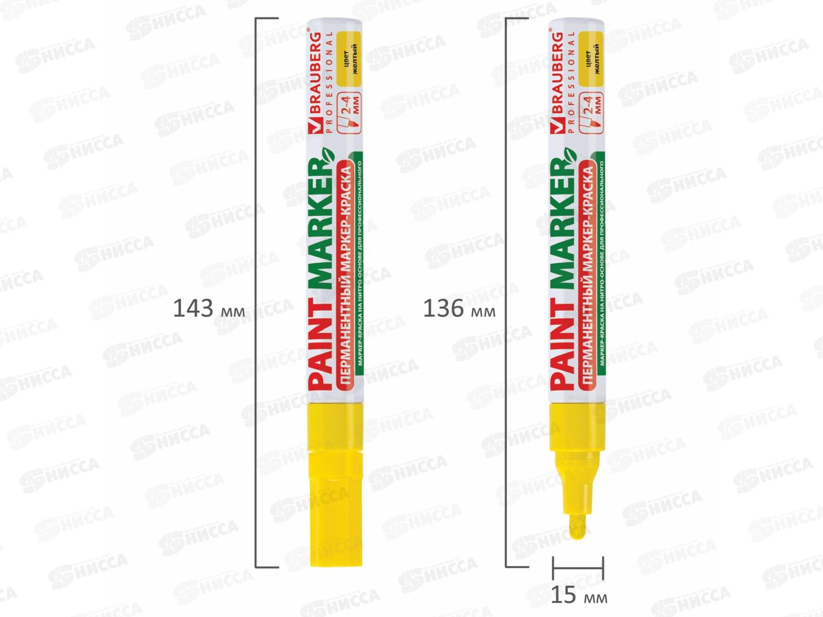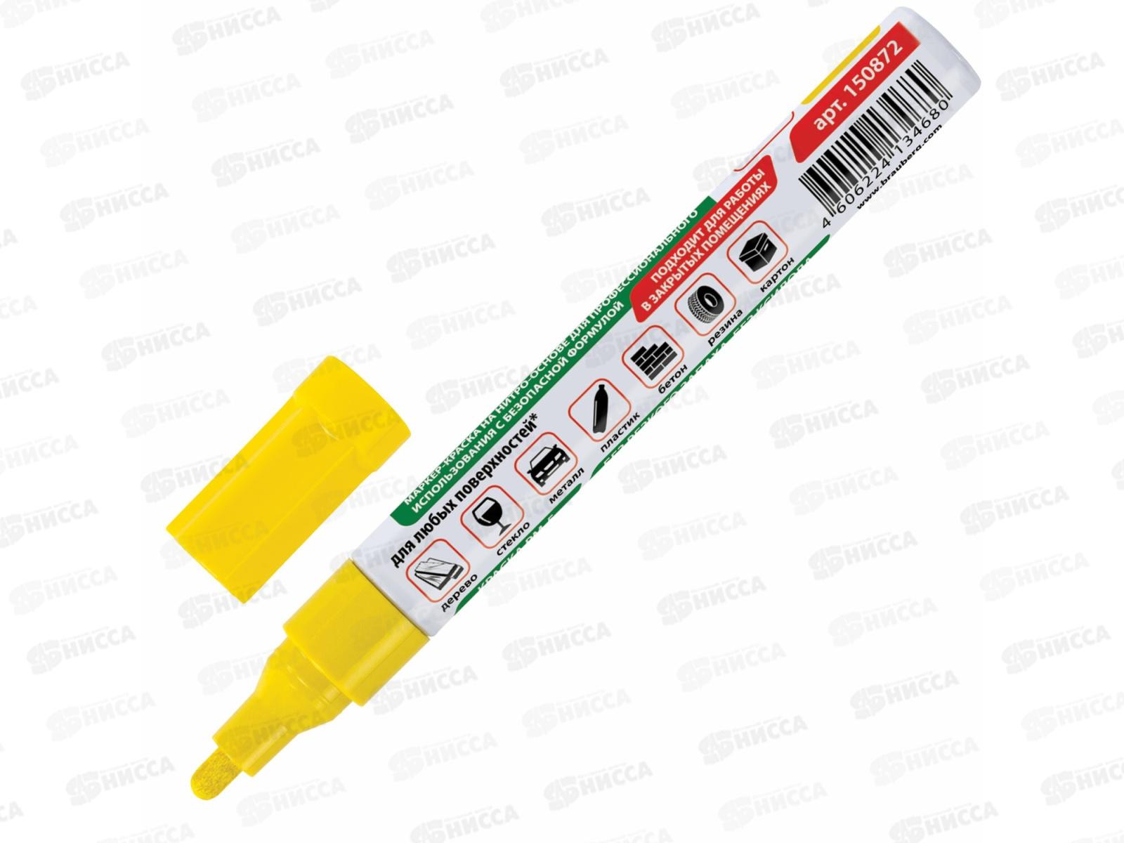 Маркер-краска BRAU лаковый желтый, 4мм б/запаха алюм.корпус 150872 *12