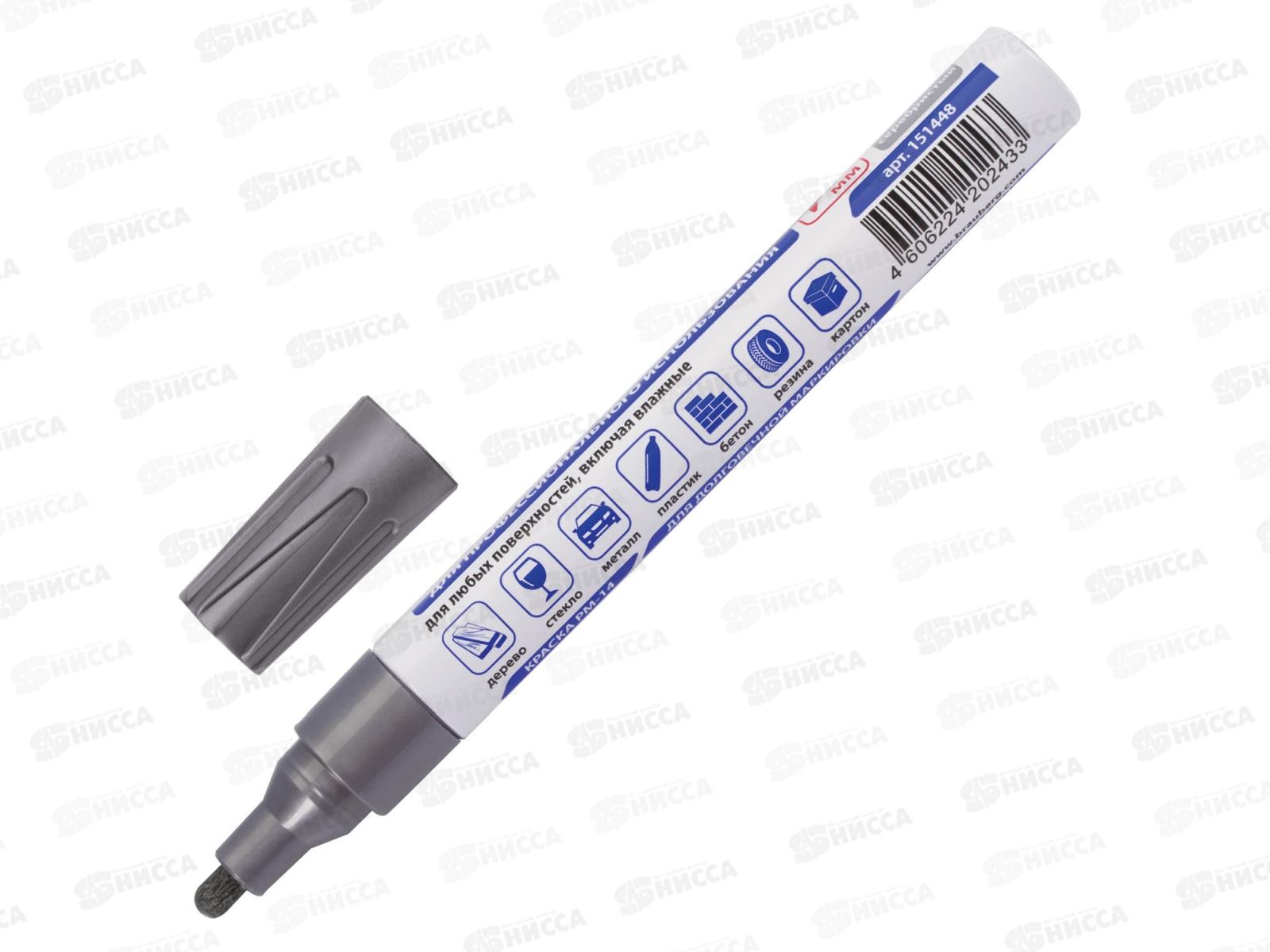 Маркер-краска BRAU лаковый серебро,4мм нитро- алюм.корпус 151448 *12