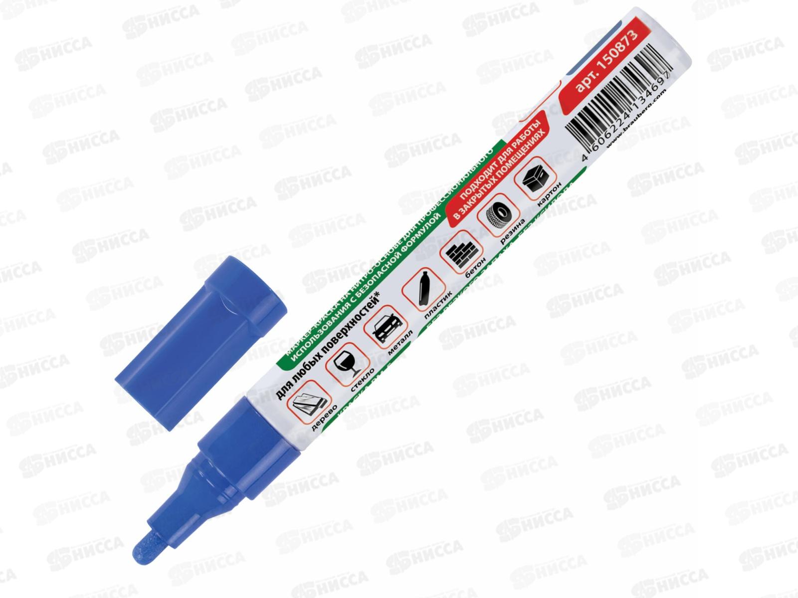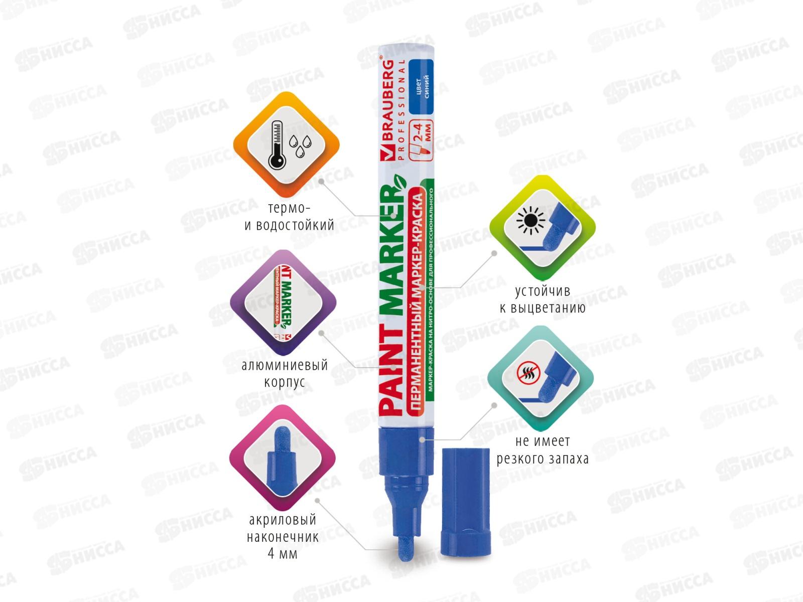 Маркер-краска BRAU лаковый синий, 4мм б/запаха алюм.корпус 150873 *12