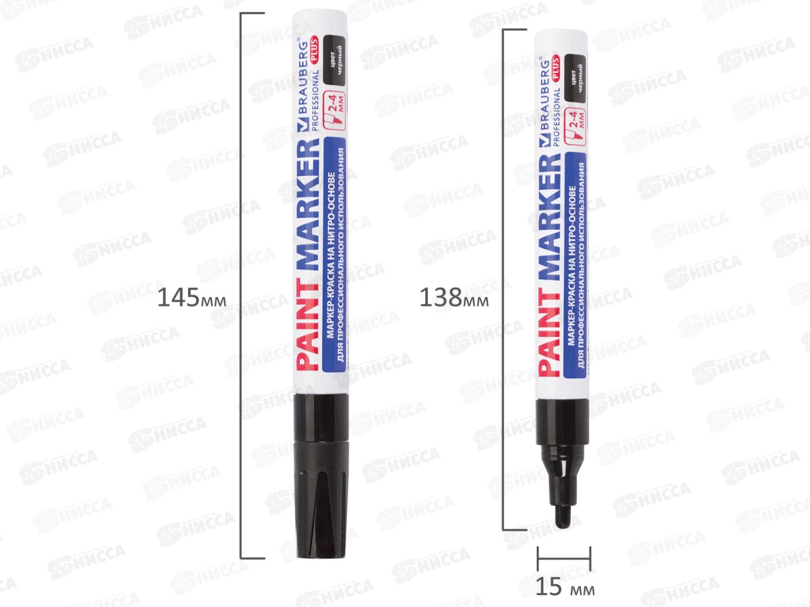 Маркер-краска BRAU лаковый черный, 4мм нитро- алюм.корпус 151445 *12/144