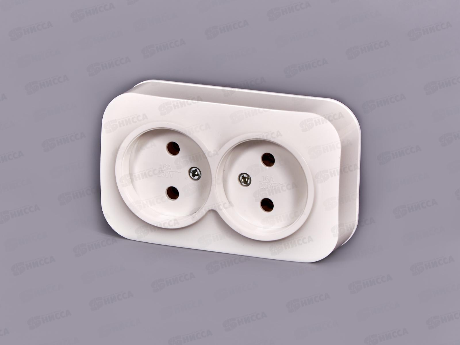 Розетка IONICH 2-местная открытой установки, без заземления, 16А, 220В белая,керамика, 1417*10