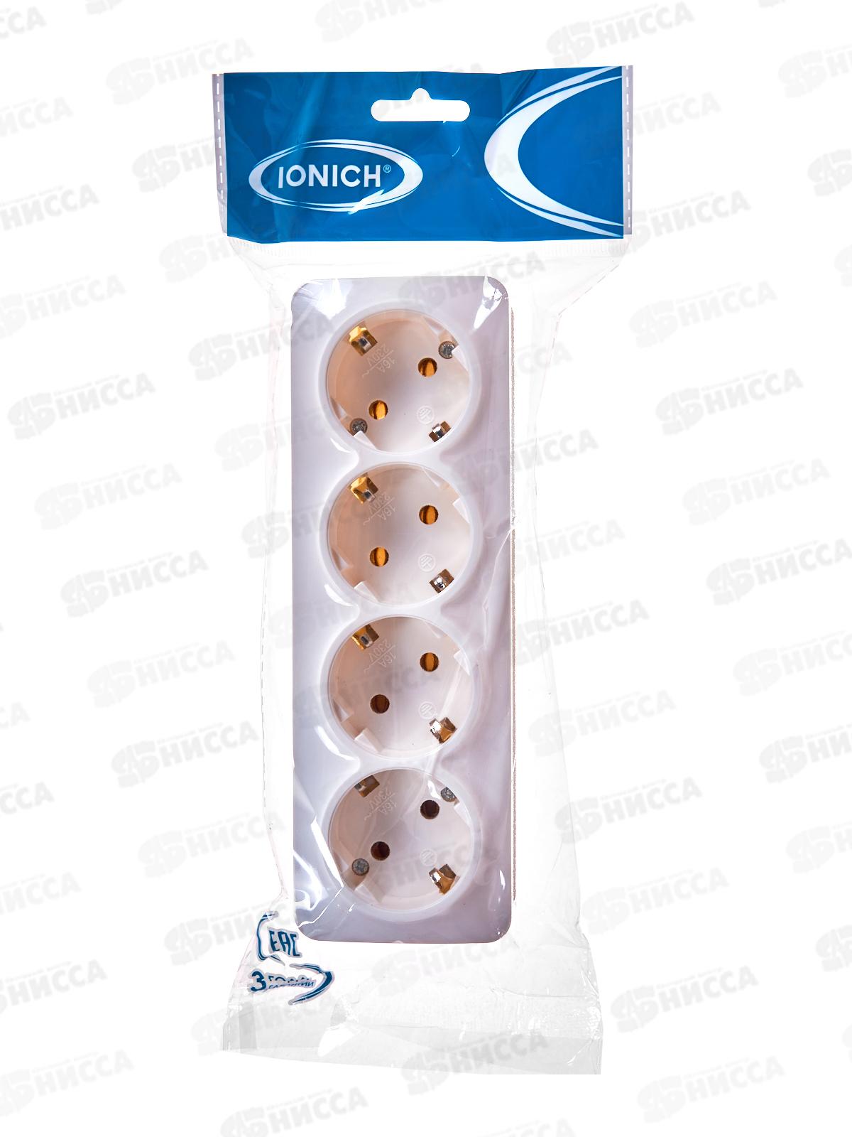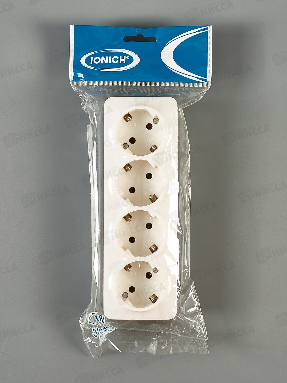 Розетка IONICH 4-местная открытой установки, с заземлением, 16А, 220В белая, керамика,1447*10