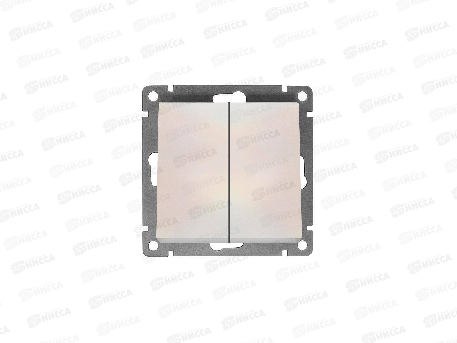 Выключатель Афина 2-клавиши скрытая установка, 10А, 220В ,жемчуг , подсветка, А0123-OBr*10