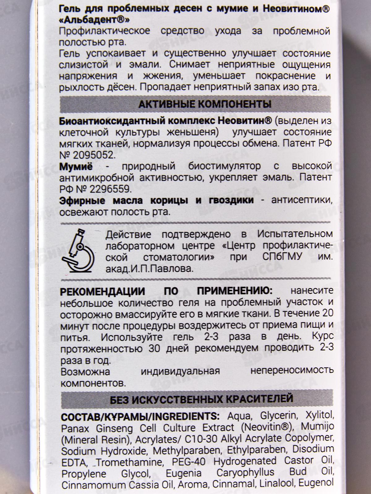 Альбадент Гель для проблемных десен с мумие и Неовитином В-544 *24