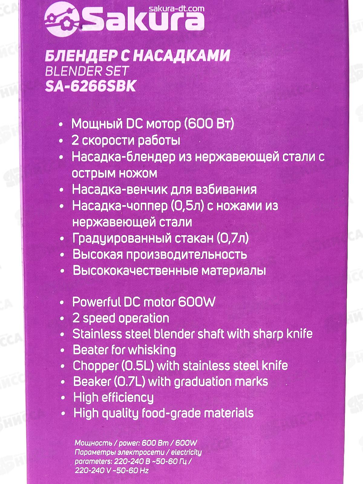 Блендер набор SA-6266SBK 600Вт стакан чоппер венчик
