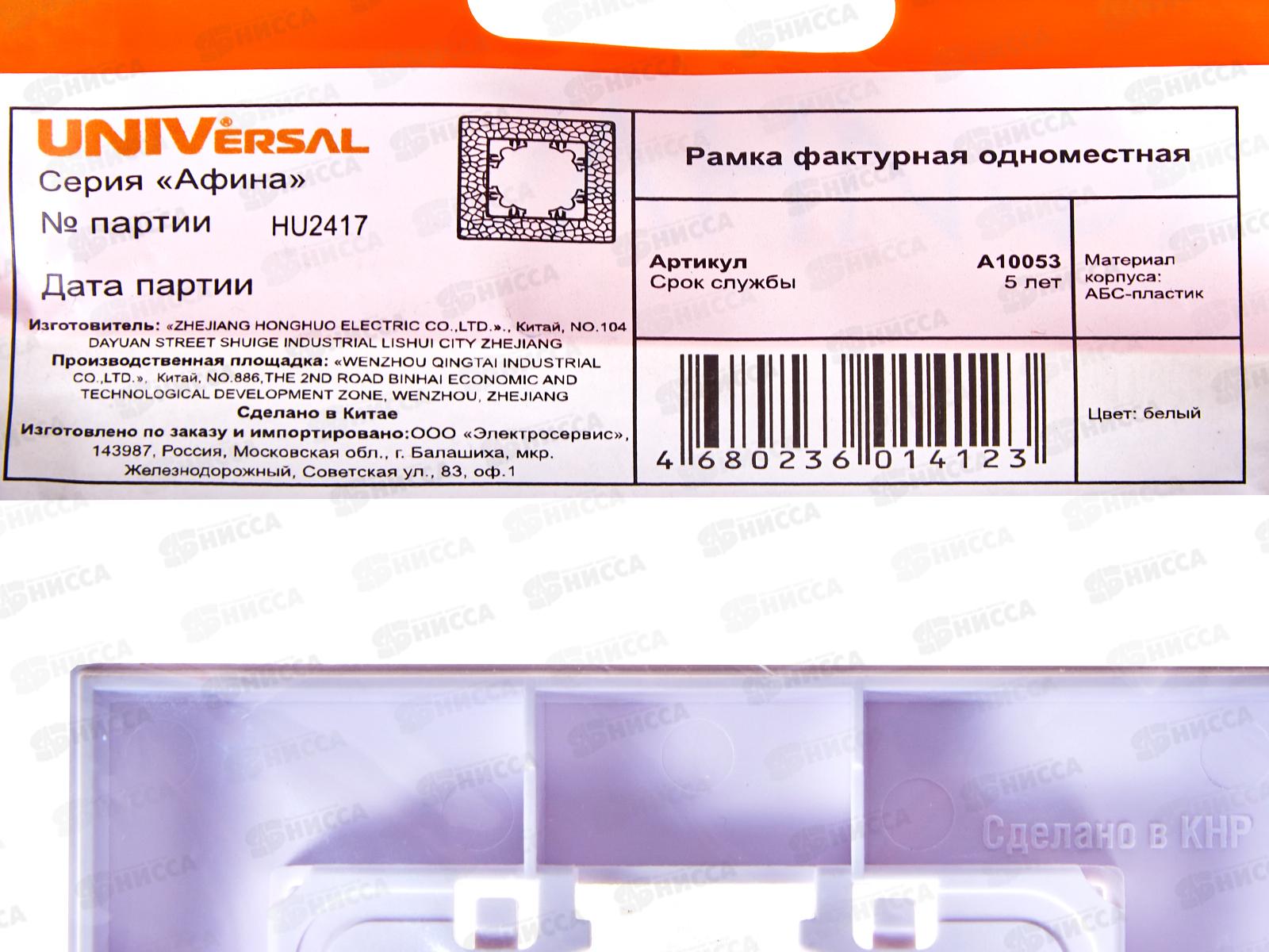 Рамка Афина одноместная фактурная белая, А10053*10