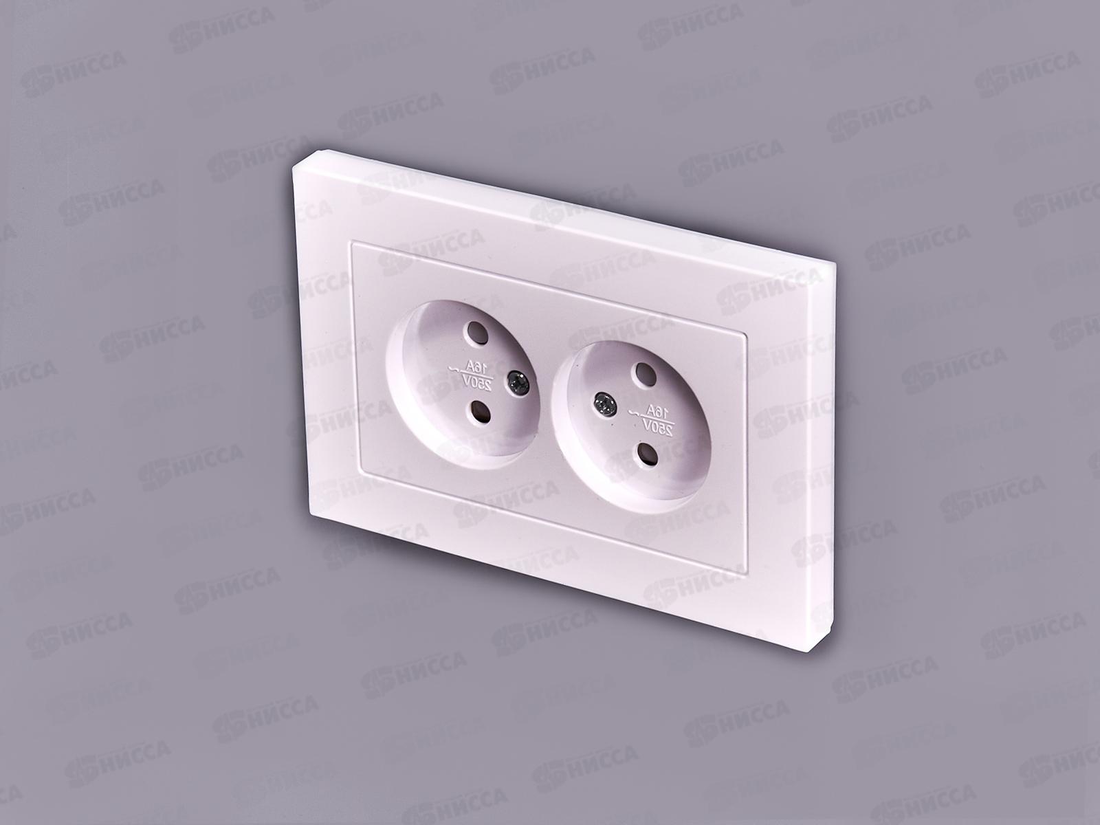 Розетка Афина 2-местная скрытой установки, без заземления,з/ш 16А, 220В белая, A0048*10