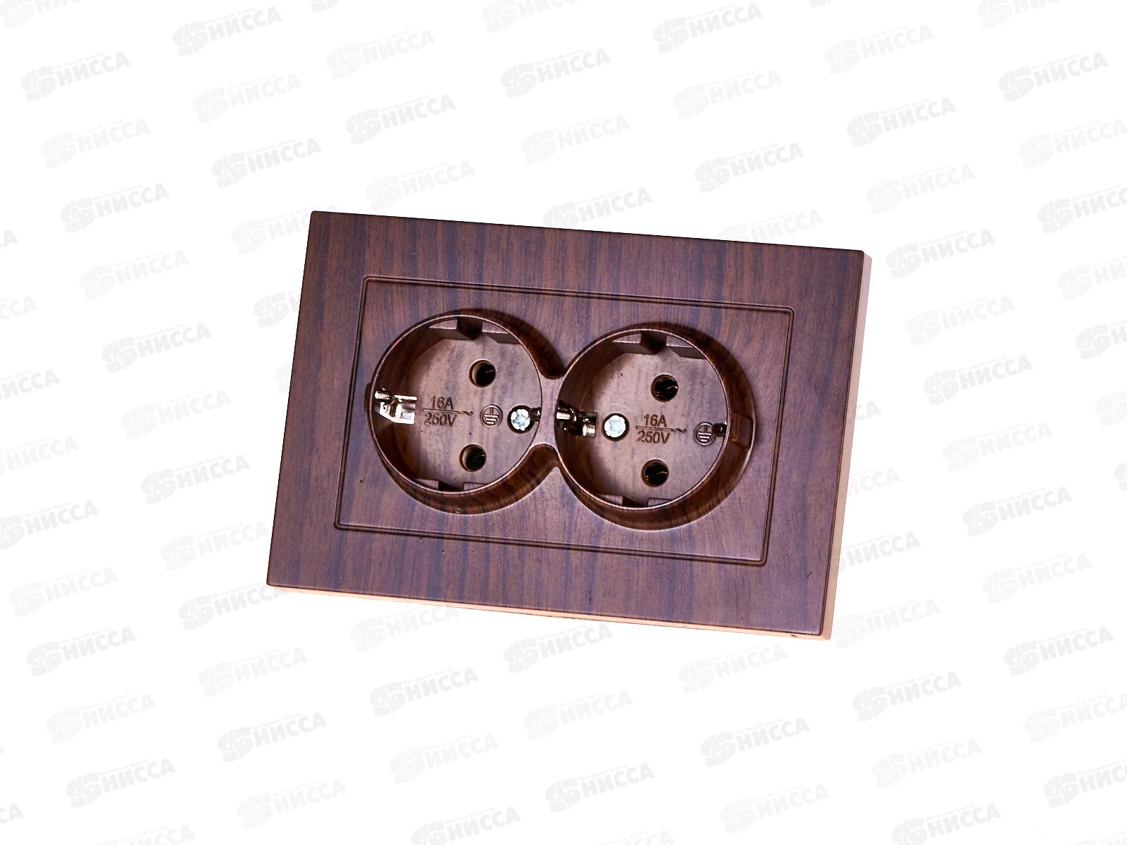 Розетка Афина 2-местная скрытой установки, с заземлением 16А, 220В венге, A0128-V*10