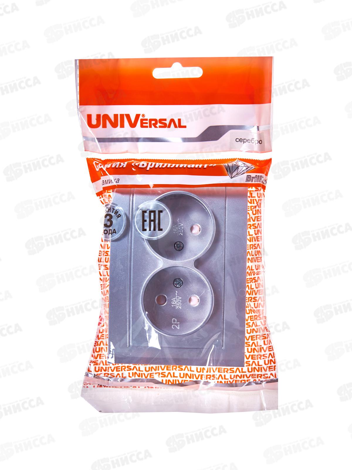 Розетка Бриллиант 2-местная без заземления, скрытой установки, з/ш 16А, 220В,серебро,керамика, 7949773*10