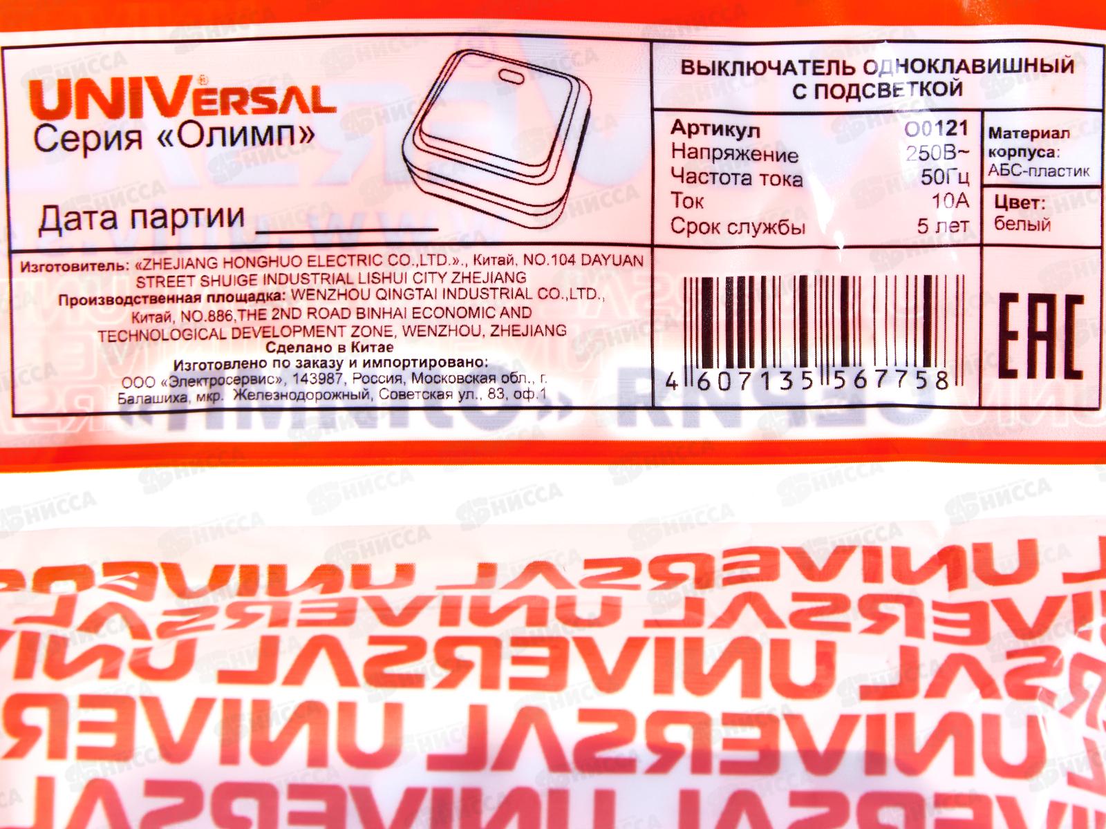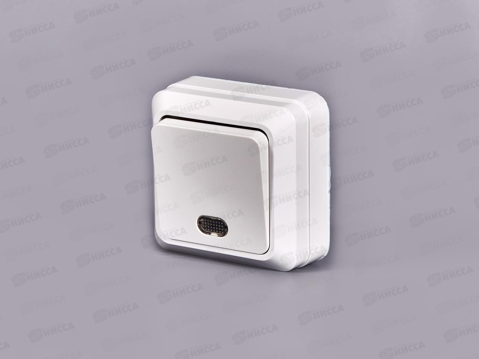 Выключатель ОЛИМП 1-клавиша открытой установки, 10А, 220В подсветка, белый, О0121 *10
