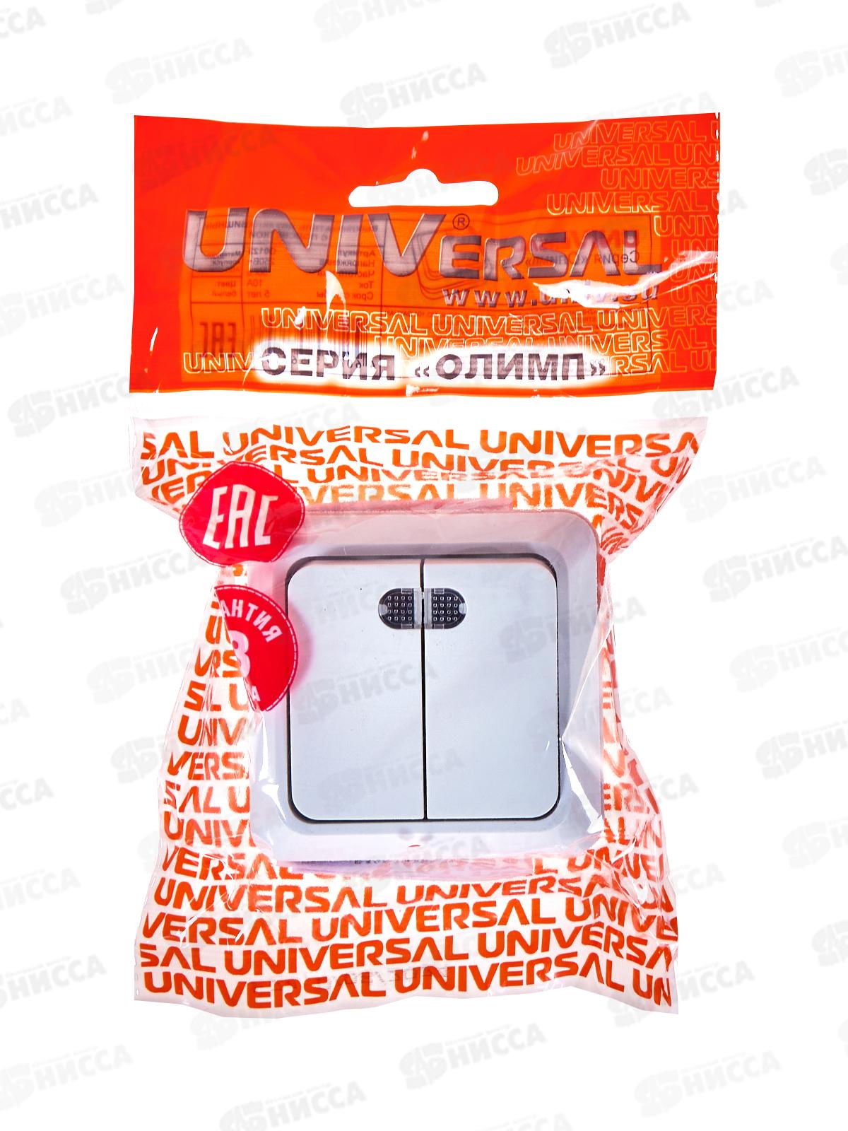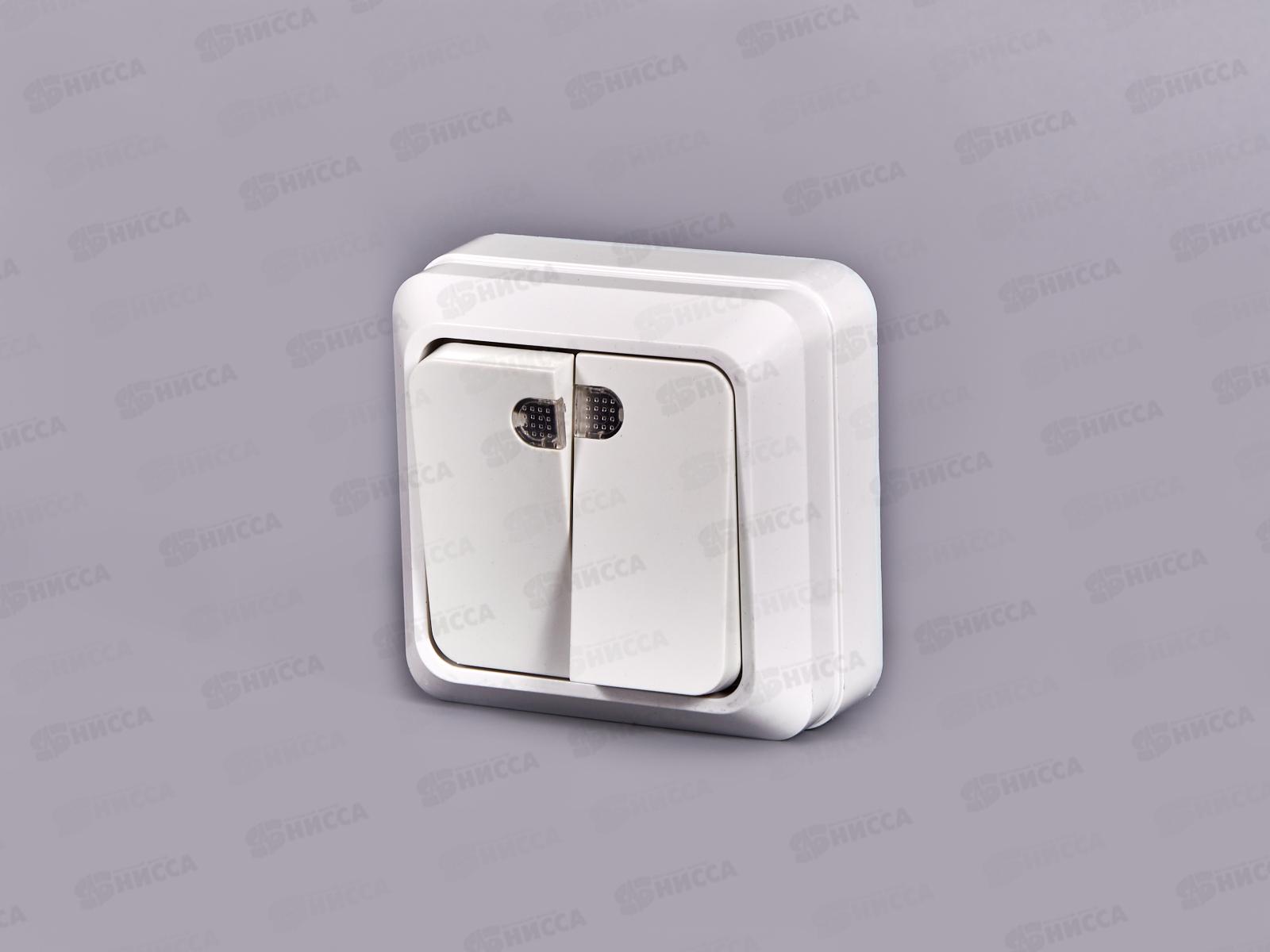 Выключатель ОЛИМП 2-клавиши открытой установки, 10А, 220В подсветка, белый, О0123*10