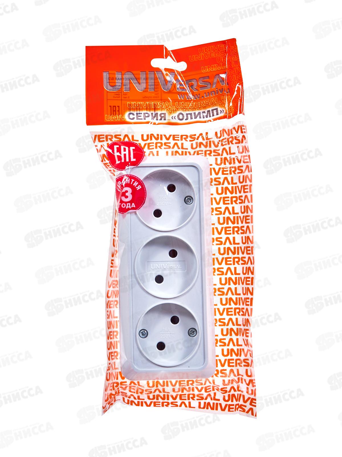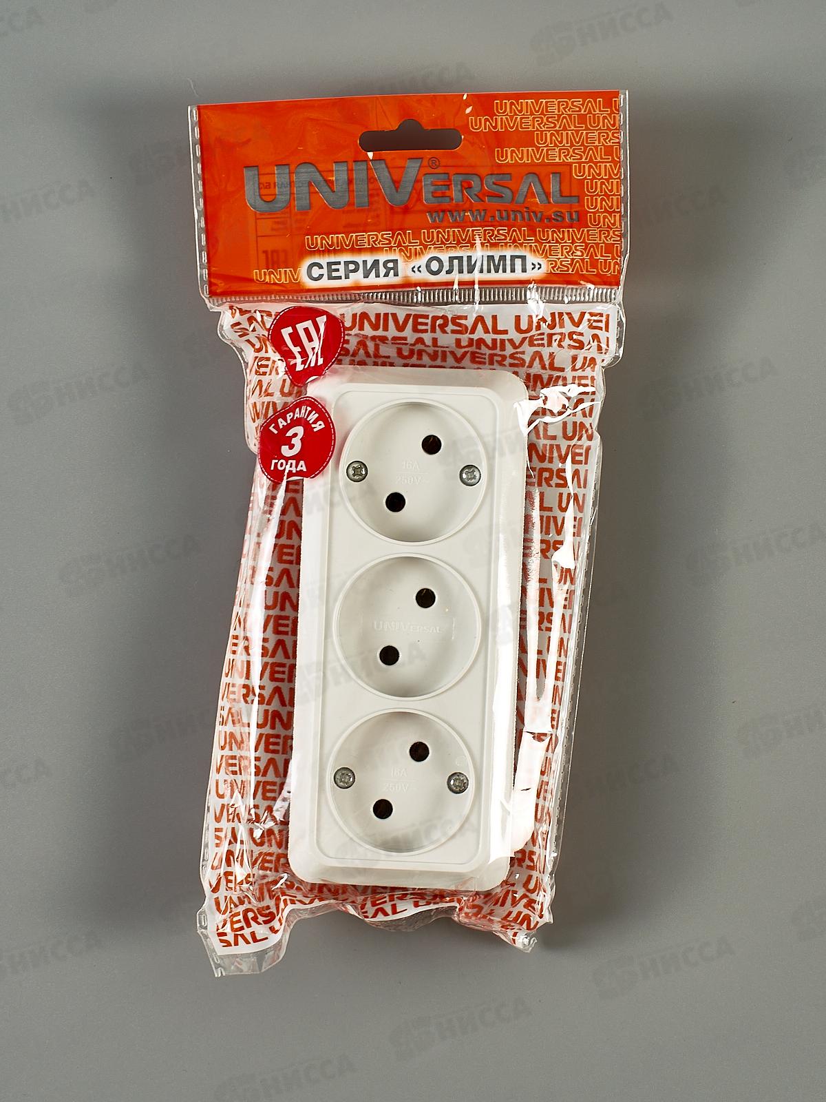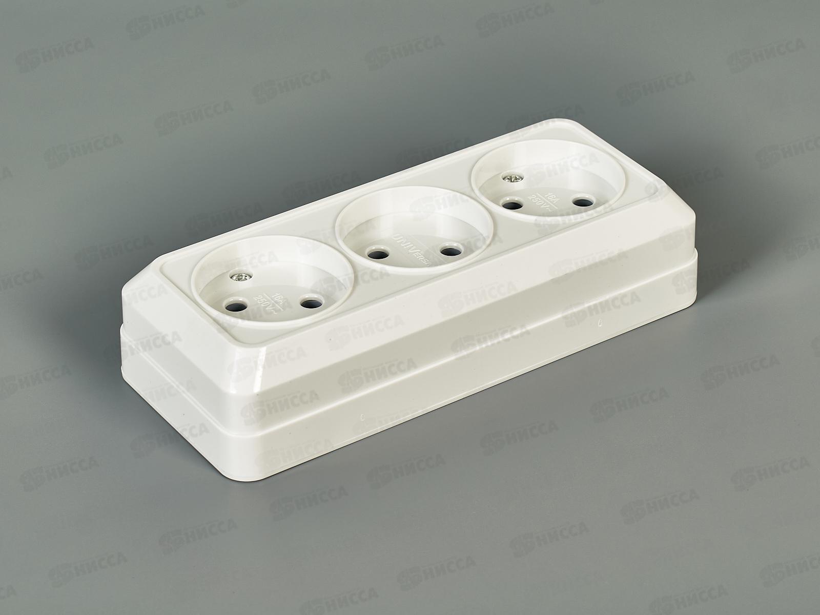 Розетка ОЛИМП 3-местная открытой установки, без заземления, 16А, 220В белая,керамика, 1160*10