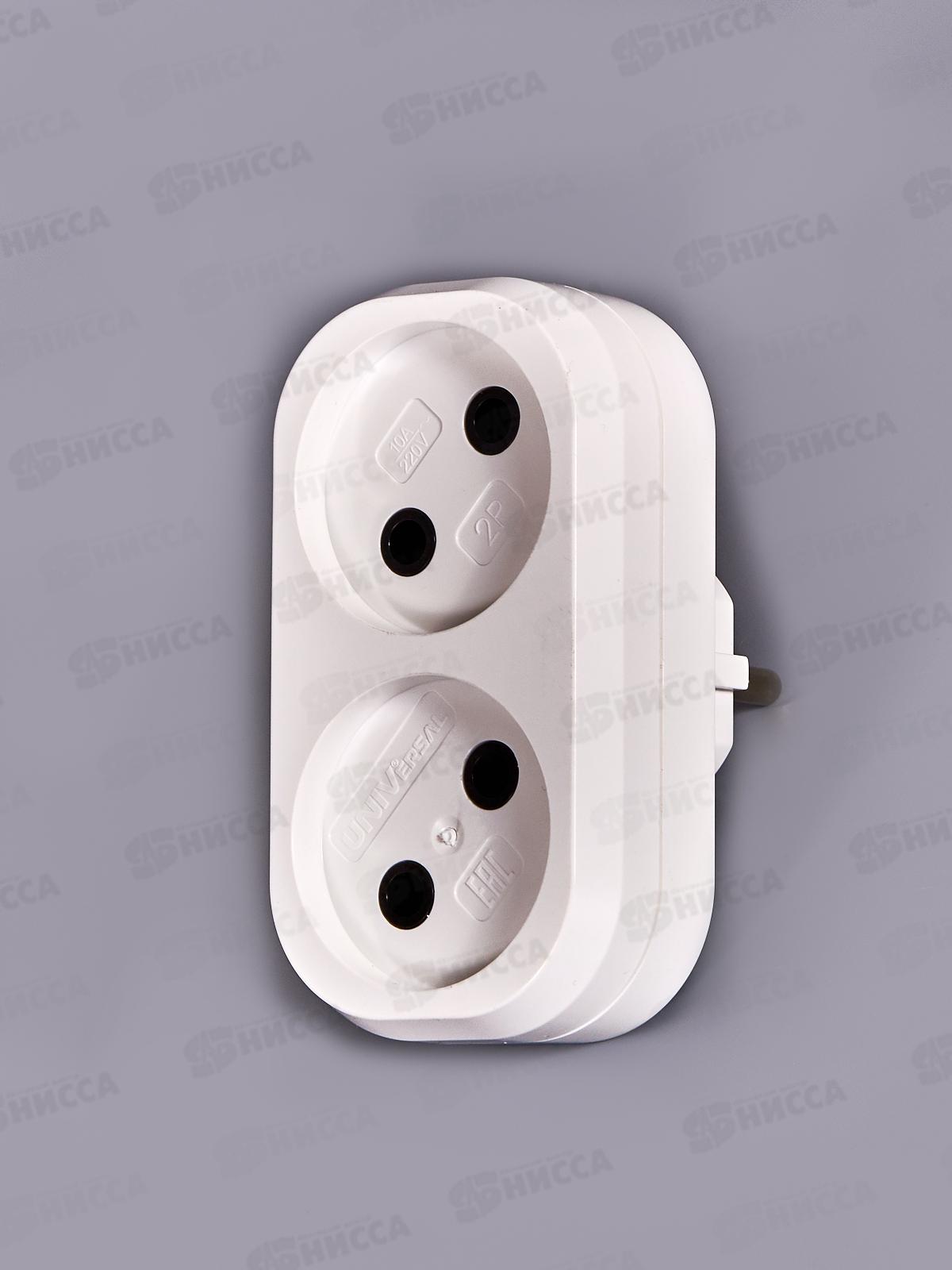 Разветвитель UNIVersal 2 гнезда, без заземления , плоский, белый 10А 250В,А202