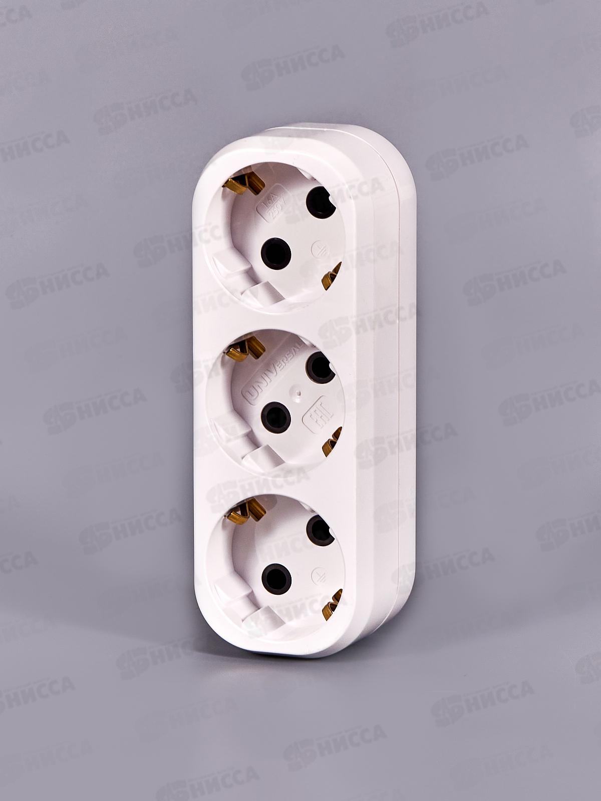Разветвитель UNIVersal 3 гнезда, с заземлением , плоский, белый 10А 250В, А303