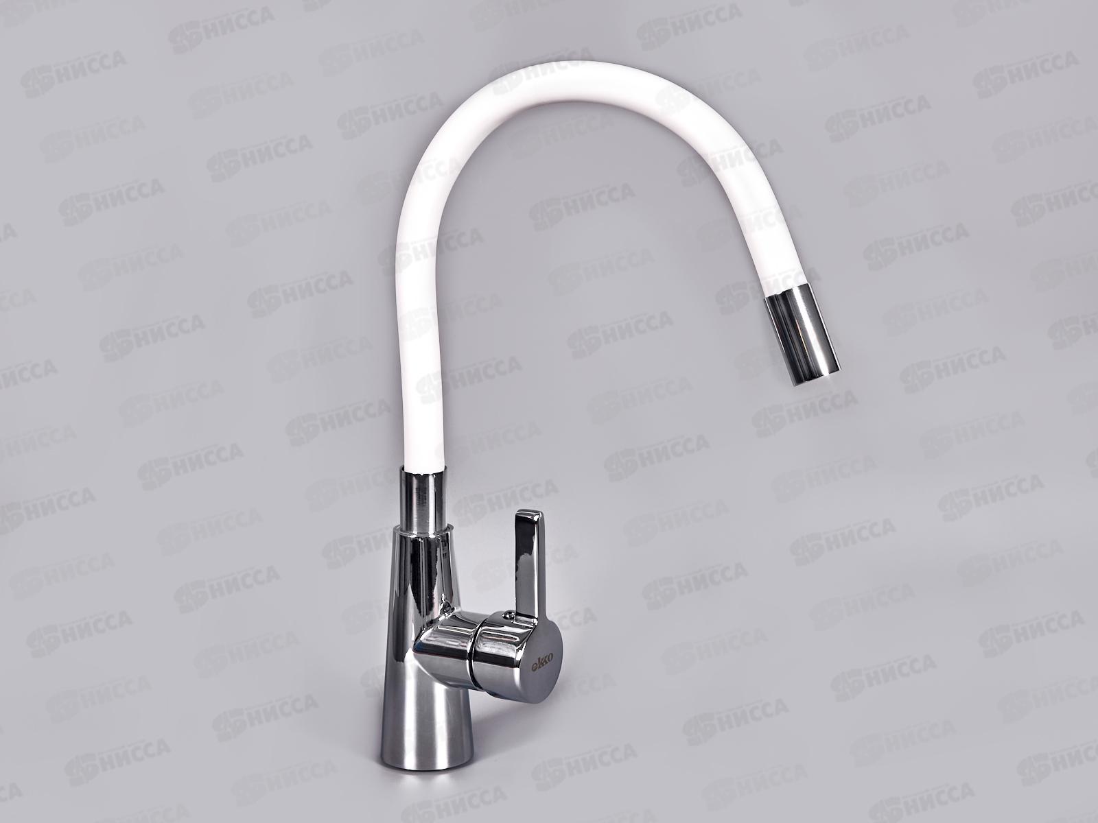 Смеситель для кухни гибкий излив с гайкой, белый, E4205-E55