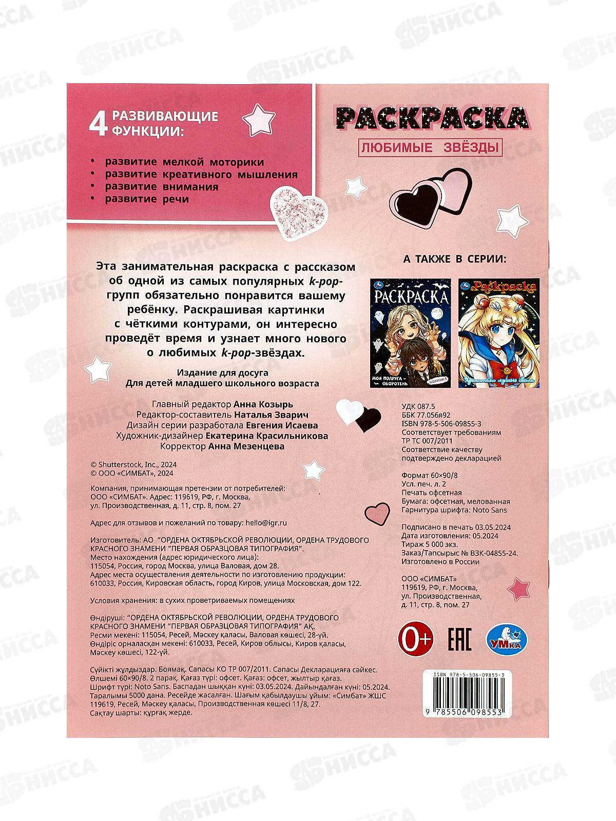 Раскраска "УМКА" 09855-3, Любимые звезды. 214х290мм 16стр.*50