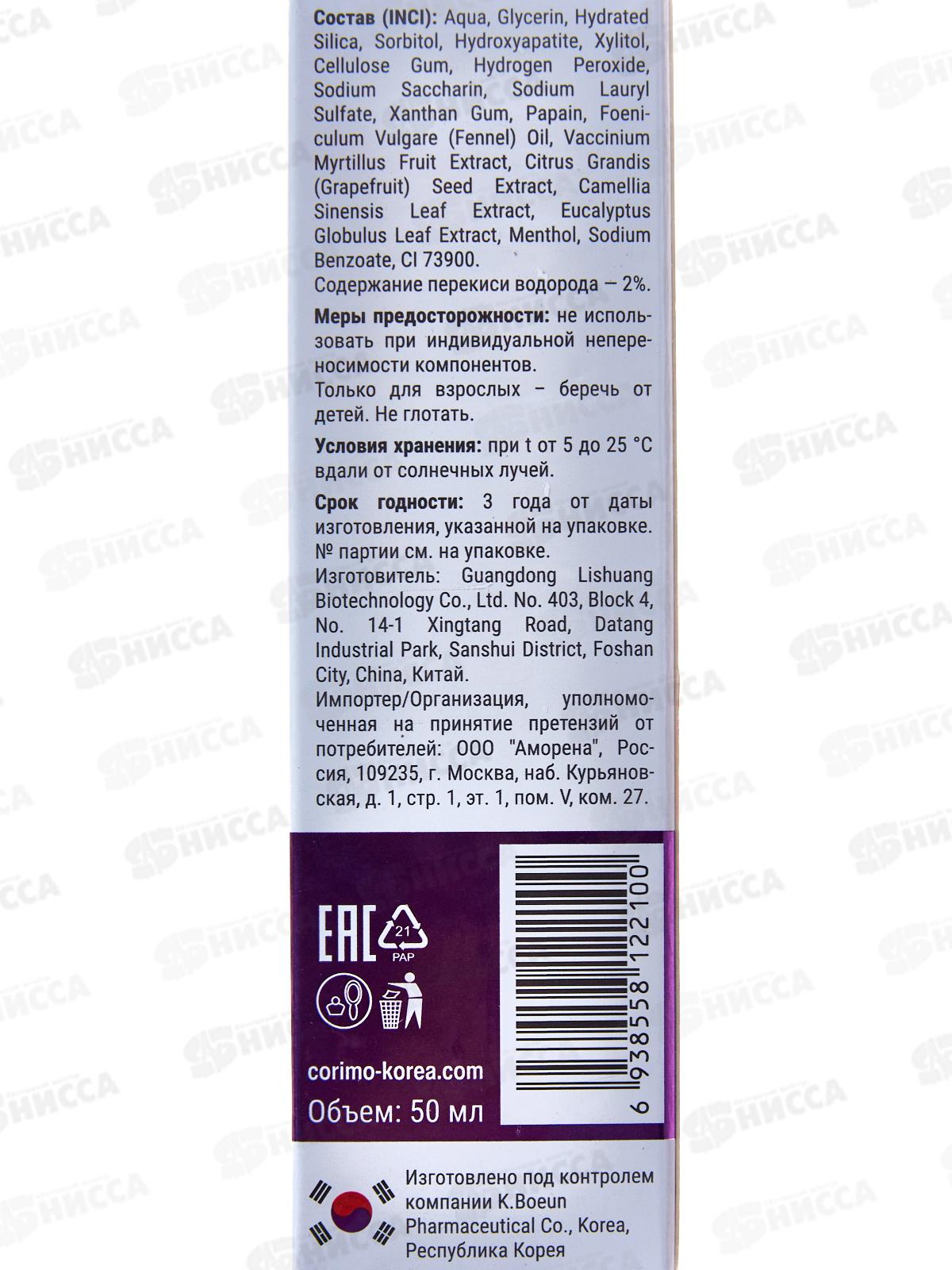 Corimo зубная пенка Отбеливающая 50мл *100 1974