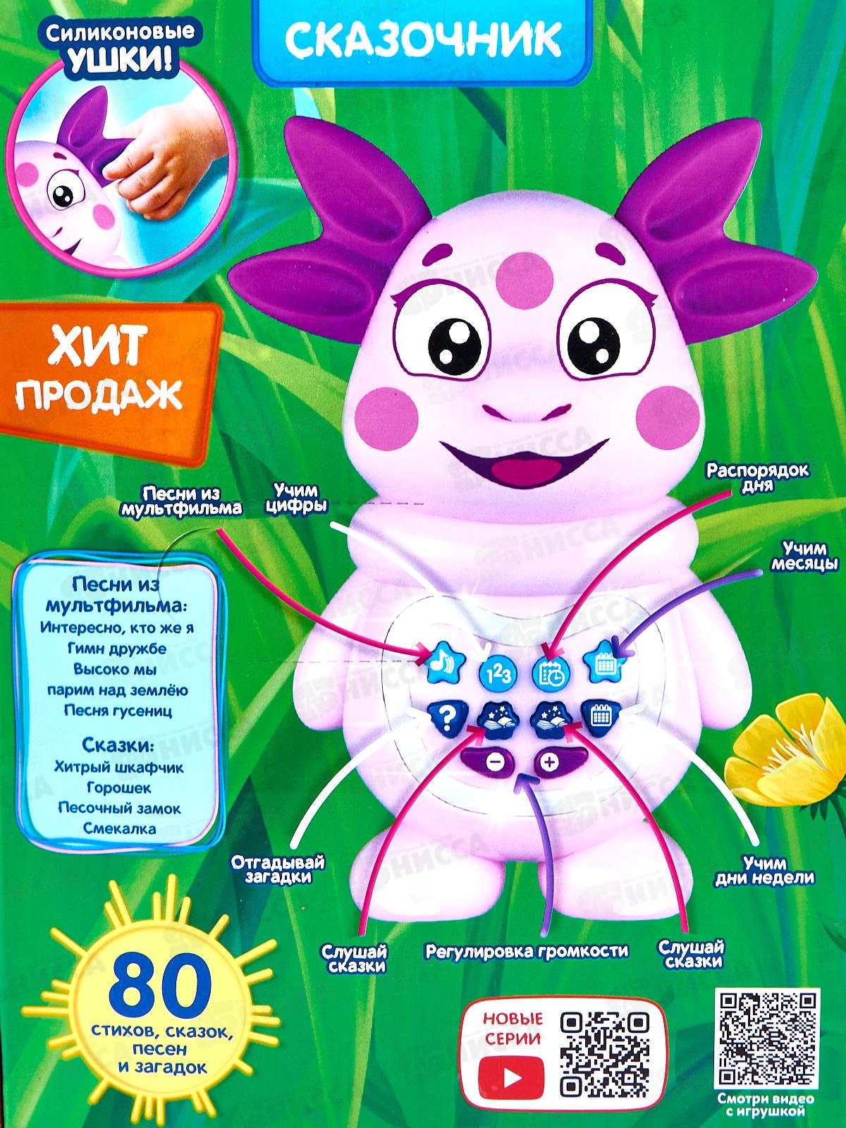 Развивающая игрушка-сказочник «Лунтик» ТМ «УМка» станет прекрасным подарком для маленьких поклонников одноимённого мультсериала: 80 стихов, сказок, песен и загадок, 4 песни из м/ф (фрагменты): «Интересно, кто же я», «Гимн дружбе», «Высоко мы парим над землею», «Песня гусениц», 4 сказки: «Хитрый шкафчик», «Горошек», «Песочный замок», «Смекалка», учим цифры, дни недели и месяцы, световые эффекты, силиконовые ушки, регулировка громкости.