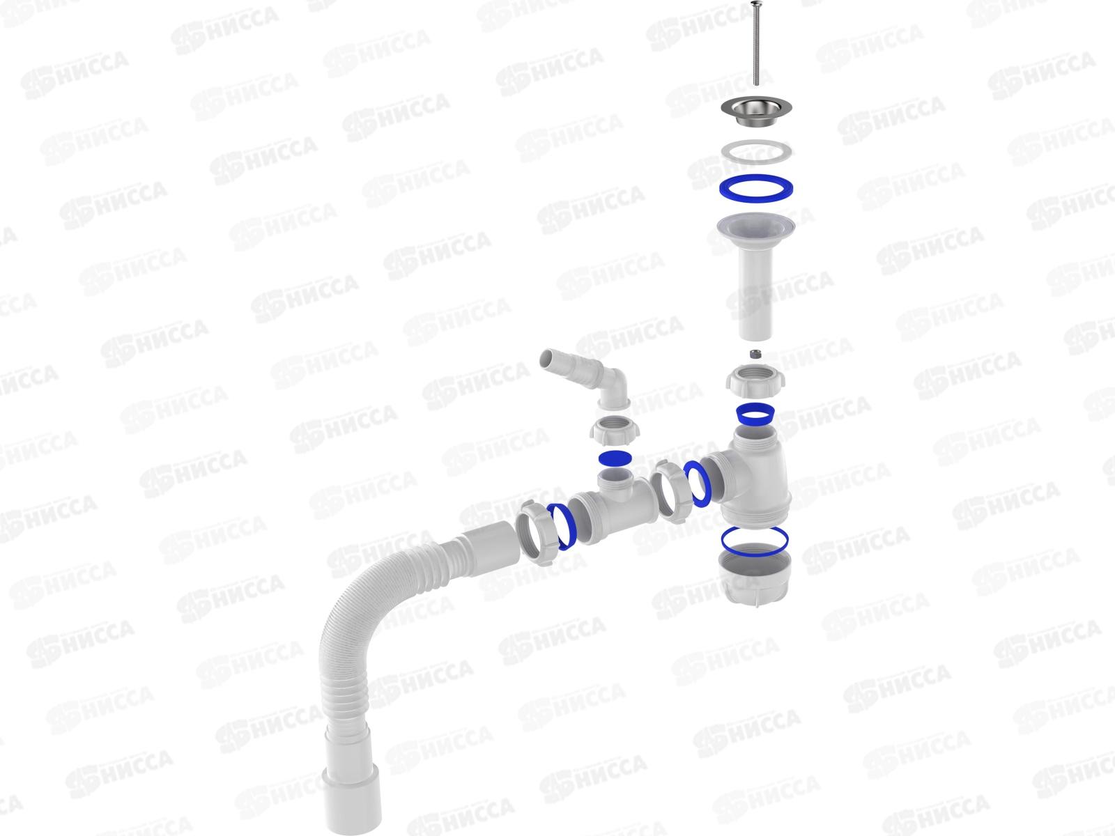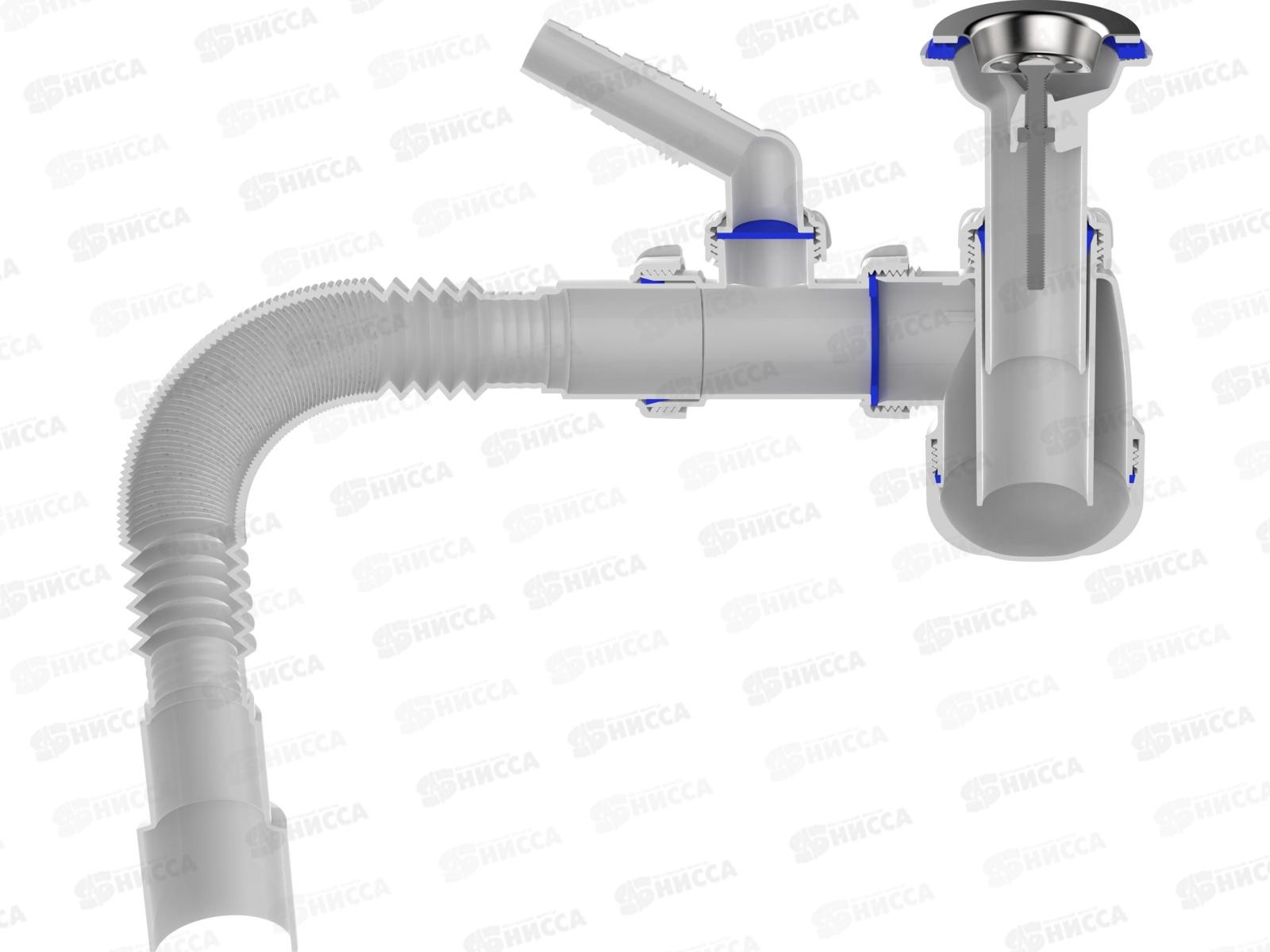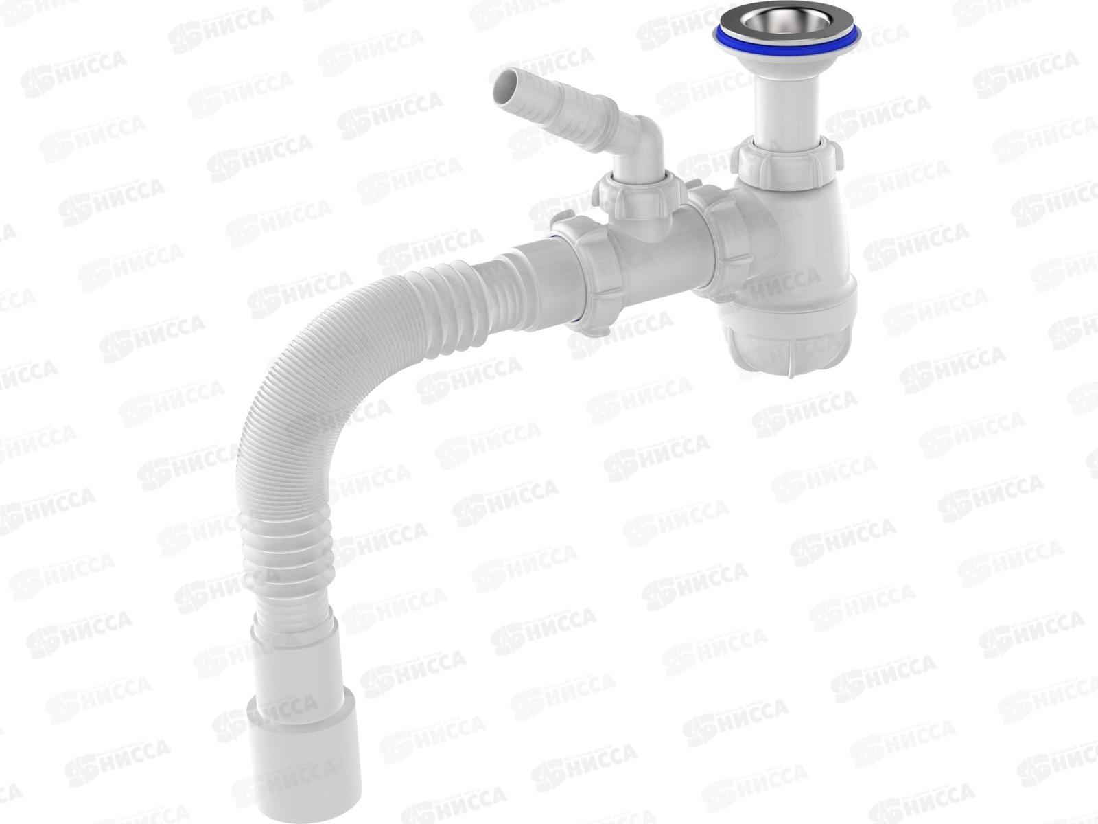 Малый сифон бутылочного типа от бренда Aquant для раковин и умывальников с диаметром сливного отверстия 42-48 мм, с удлиненной горловиной с литым выпуском (тюльпан) с решеткой из нержавеющей стали O63 мм. Корпус сифона небольшой по габаритам, с диаметром всего 70мм. Решетка крепится к выпуску на винт 80 мм и гайку шестигранную М6. Патрубок отвода под гайку 1 1/4" (внутренний диаметр 32мм). Высота установки сифона регулируется. Идет в комплекте с специальным патрубком с отводом для подключения стиральной машины и гофротрубой с универсальным выходом под два диаметра 40/50мм для подключения к канализации. Сифон прост в установке, позволяет прочистить его в случае засорения без демонтажа и способен улавливать мелкие предметы, например, кольца или серьги. Конструкция корпуса сифона Аквант имеет эксклюзивный дизайн и запатентована патентом на промышленный образец. Внутренняя поверхность стакана сифона с зеркальной полировкой обеспечивает улучшенную проточность. Скорость слива: 25 л/мин. Все пластиковые детали сифона производятся из первичного полипропилена с добавлением снежно-белого красителя. Прокладки изготовлены из высококачественных пластикатов (TPE, PVC, LDPE) и обеспечивают длительный срок службы и высокую ремонтопригодность. Сифон выдерживает перепад температур от +5 до +80 градусов. Все необходимые прокладки, гайки и винты в комплекте.