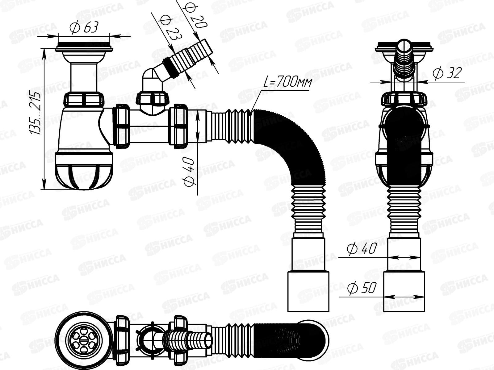 Конструкция: с удлиненной горловиной, с отводом, с гофротрубой