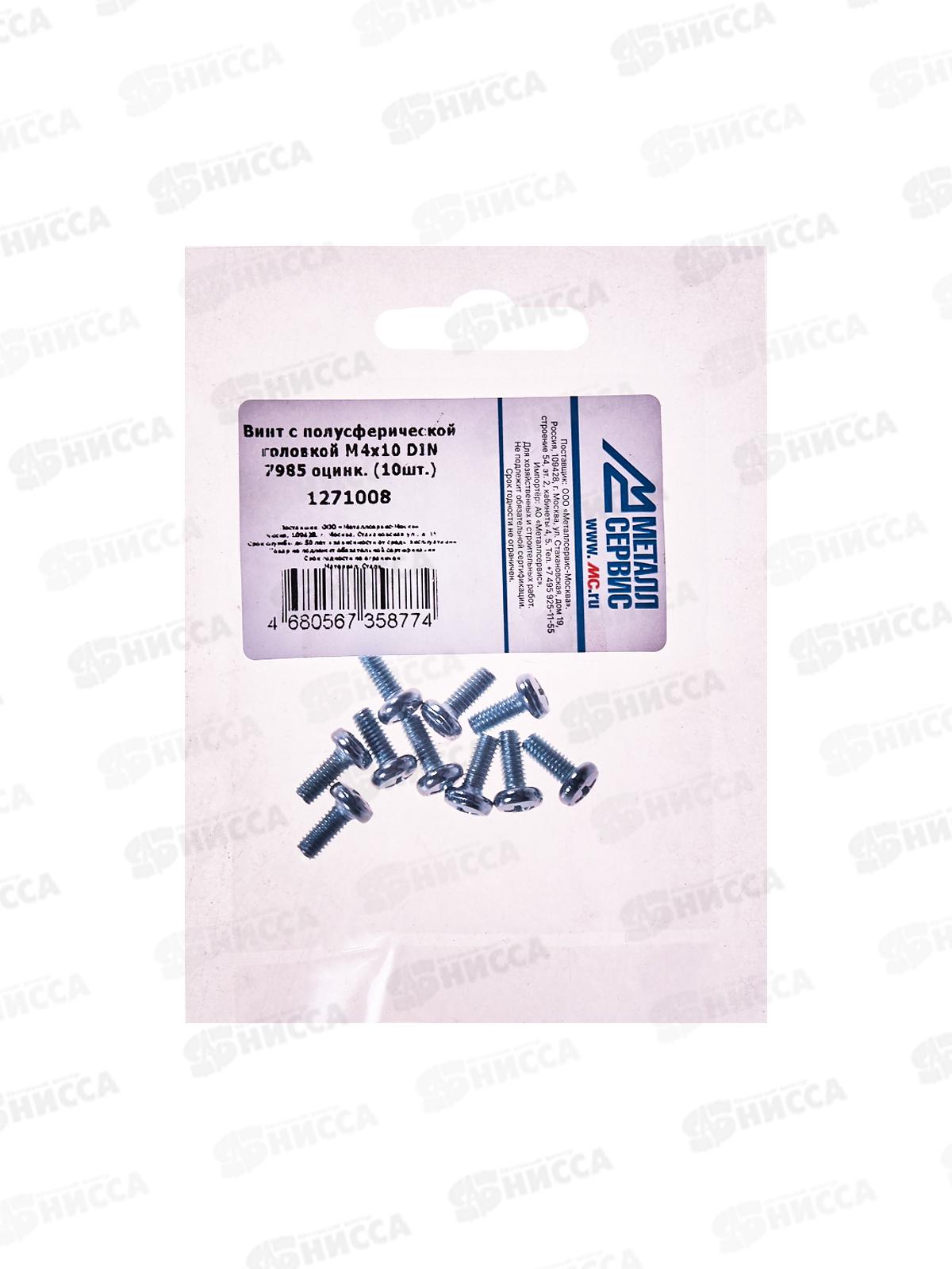 Винт с полусферической головкой M4x10 DIN7985 оцинк. (10шт) *10
