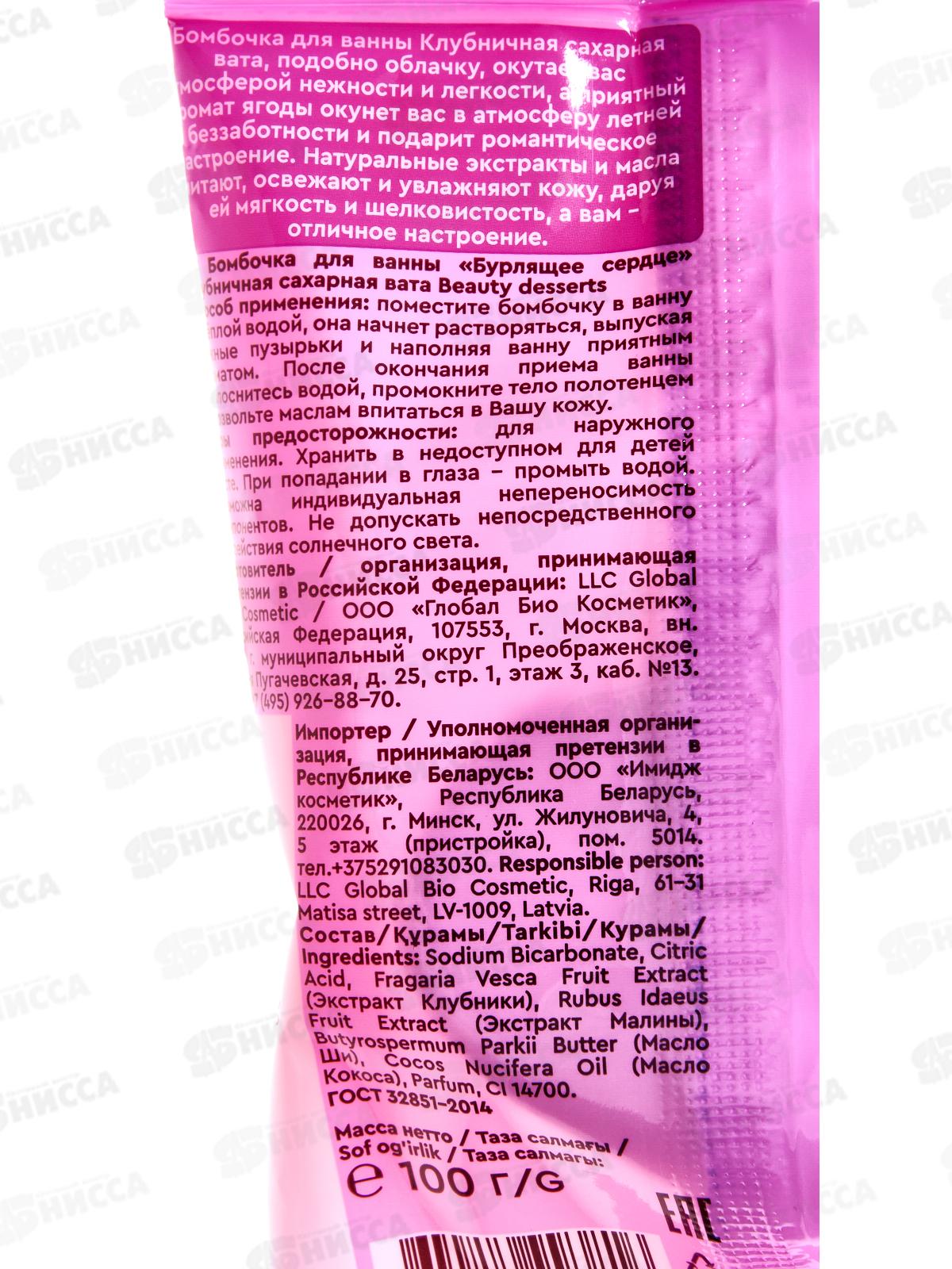 Beauty Desserts Бурлящее сердце для ванны Клубничная вата 100г *8
