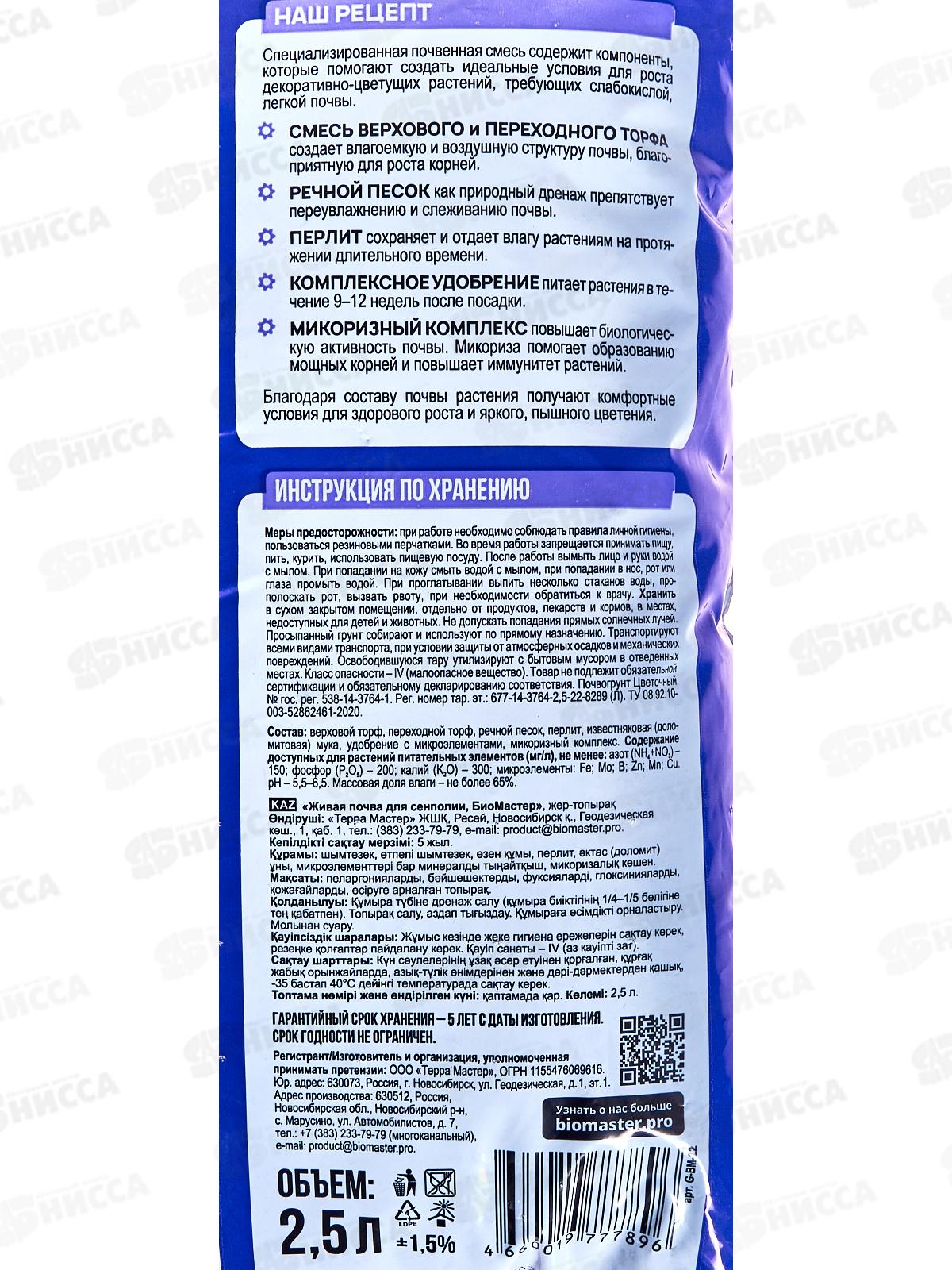 БИО МАСТЕР живая почва для сенполия 2,5л *15