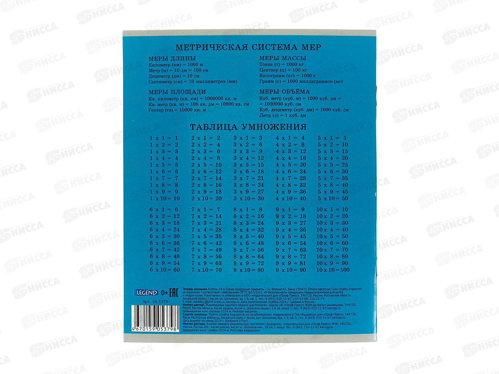 Тетрадь 18л клетка Legend Школьные предметы-1, 4 диз., 18-5379 *20/140