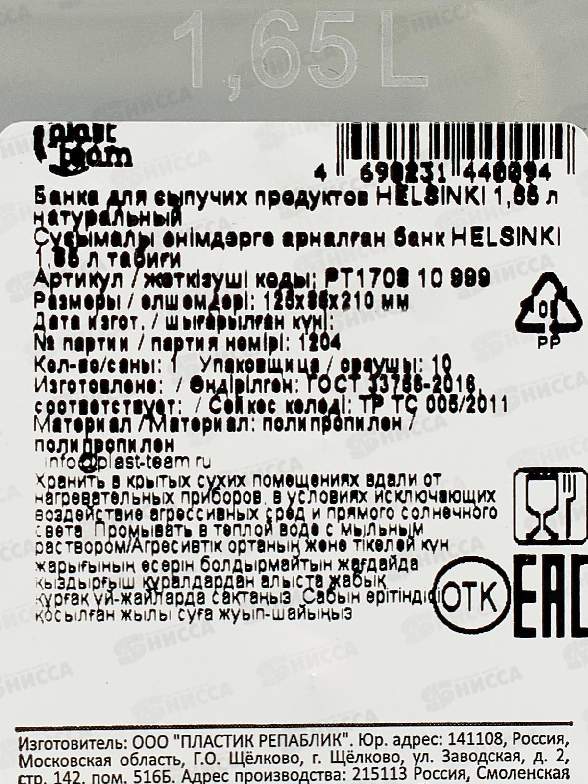 Банка д/сып прод "HELSINKI" 1,65л РТ170810999