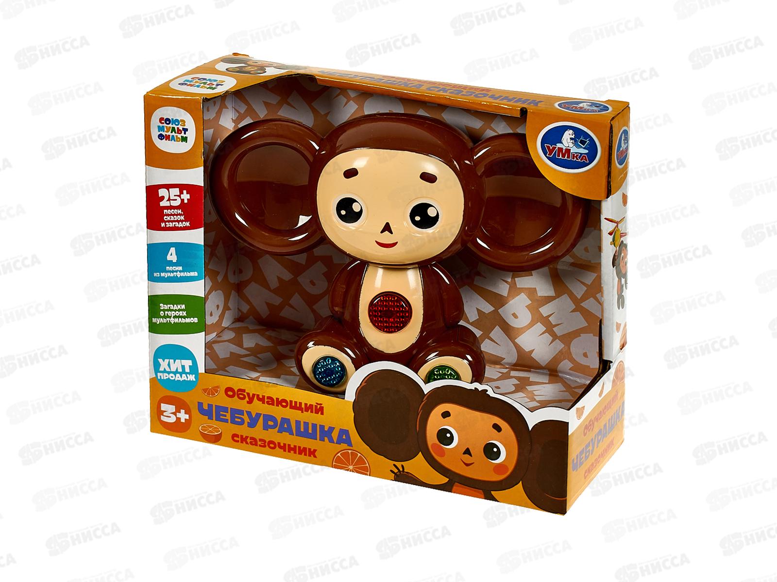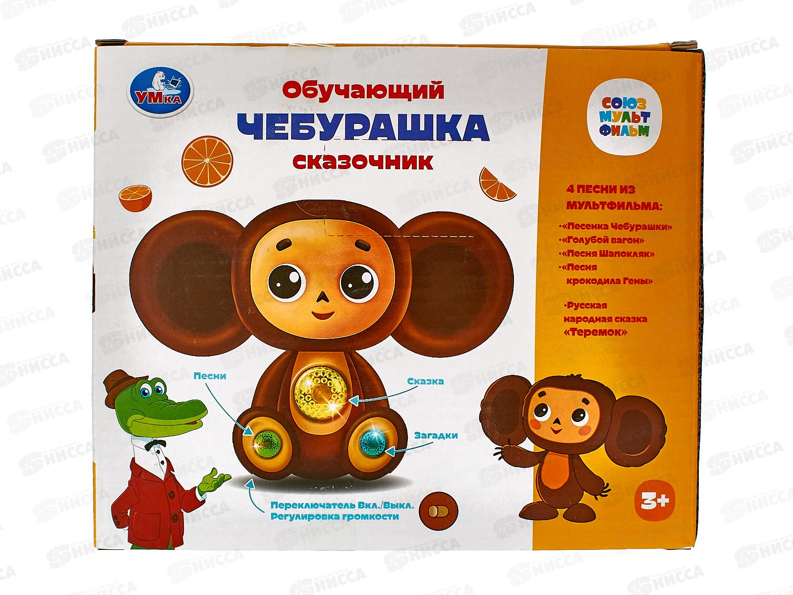 Обучающая игрушка «Чебурашка-сказочник» ТМ «УМка» станет прекрасным подарком для маленьких поклонников мультфильма студии «Союзмультфильм» про забавного ушастика: - 25+ песен, сказок и загадок, - 4 песни из м/ф (фрагменты): «Песня Чебурашки», «Голубой вагон», «Песня Шапокляк», «Песня крокодила Гены», - русская народная сказка: «Теремок», - загадки о героях мультфильмов, - световые эффекты, - переключатель «Вкл./Выкл.» и регулировка громкости.