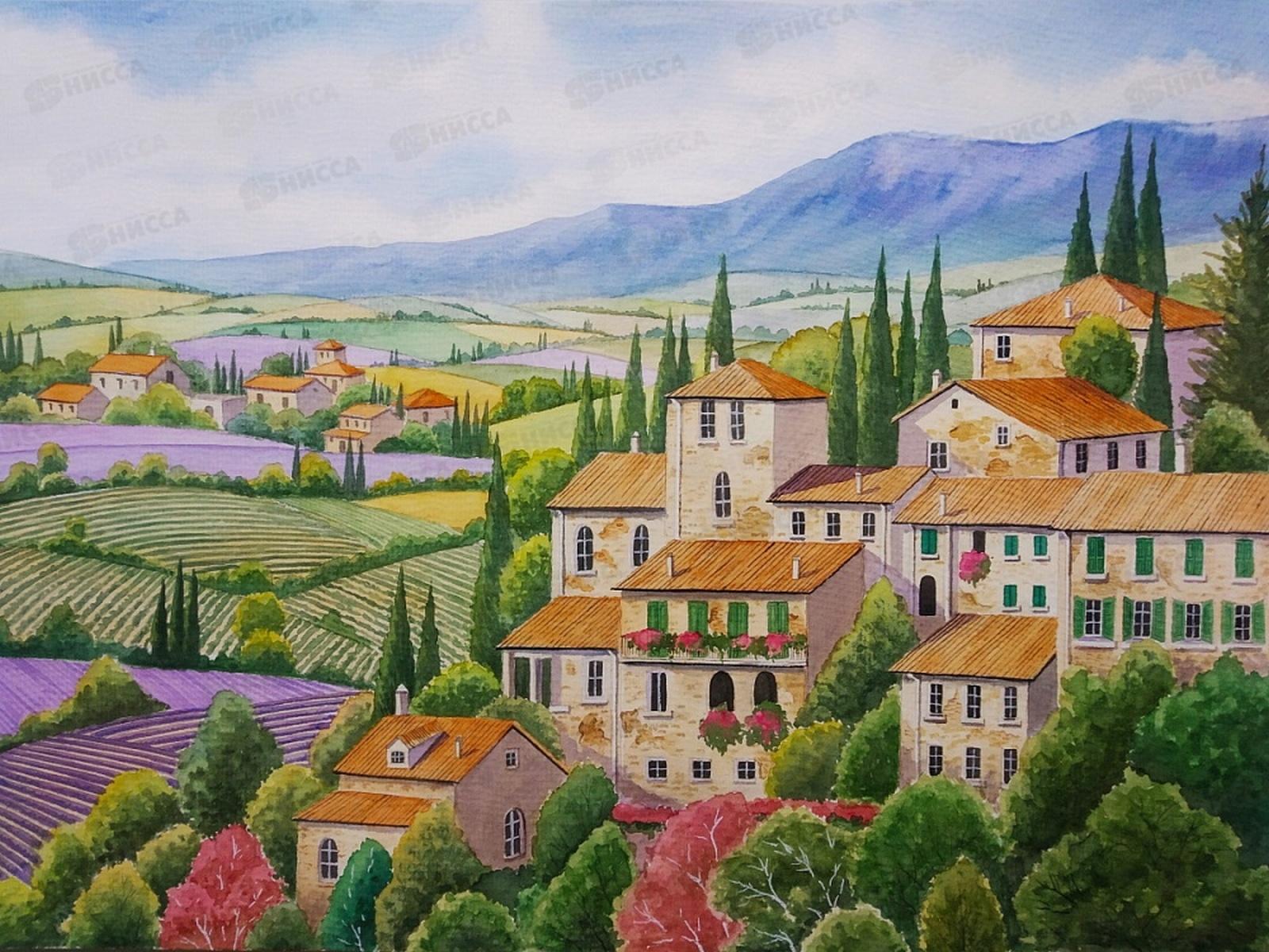 Холст с красками 22х30см Вид на поля лаванды, Х-3995