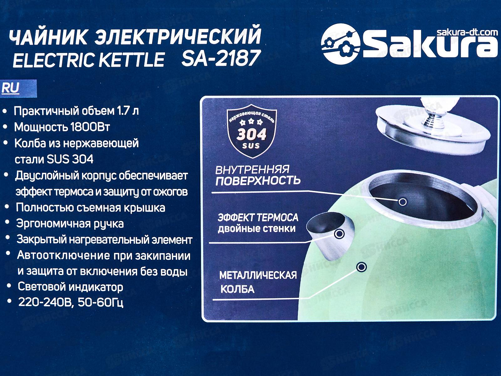 Чайник электр. SA-2187GR 1,7л Зелено-серый