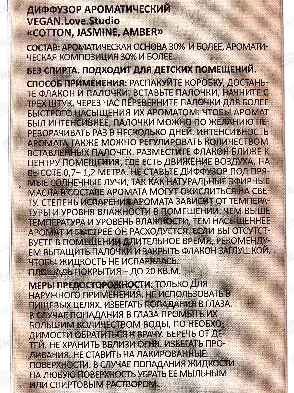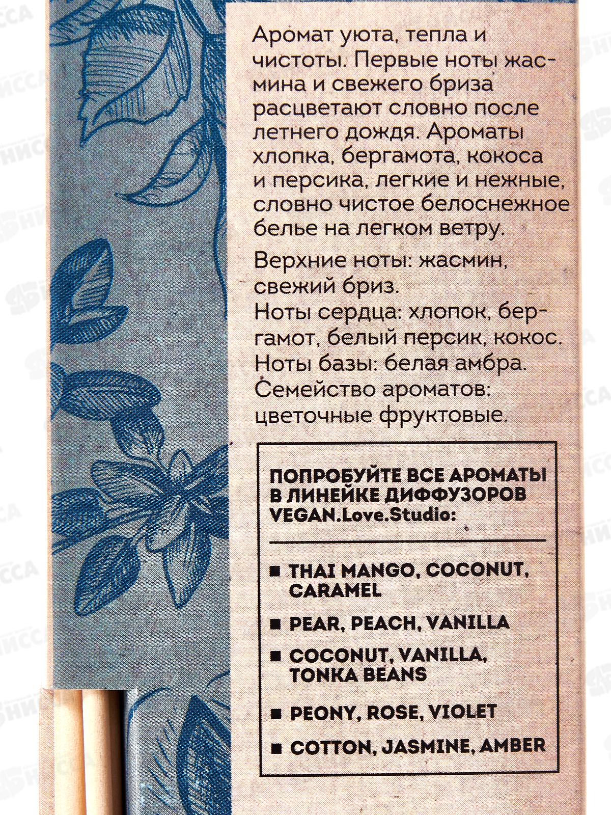 Диффузор аромат Vegan L.S. Cotton Jasmine Amber 100мл *18