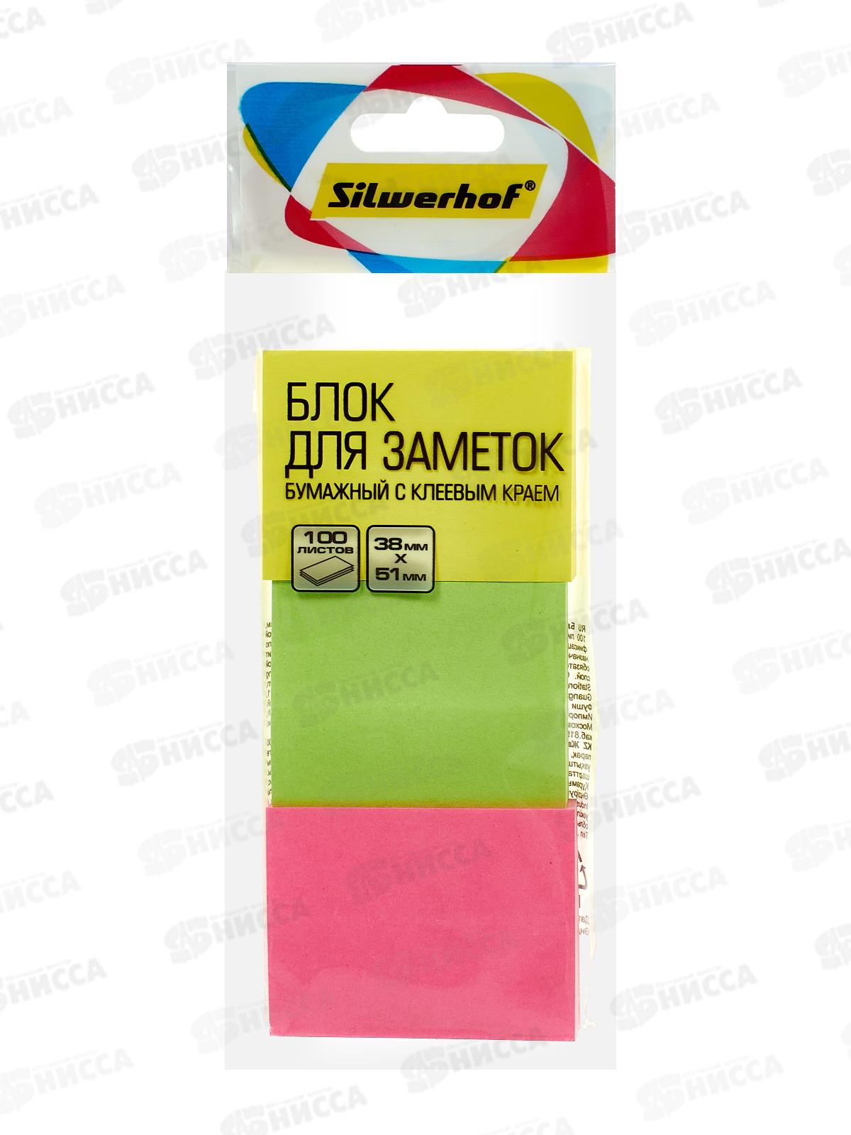 Блок липкий SILWERHOF 38*51мм 100л. неон ассорти 1976322