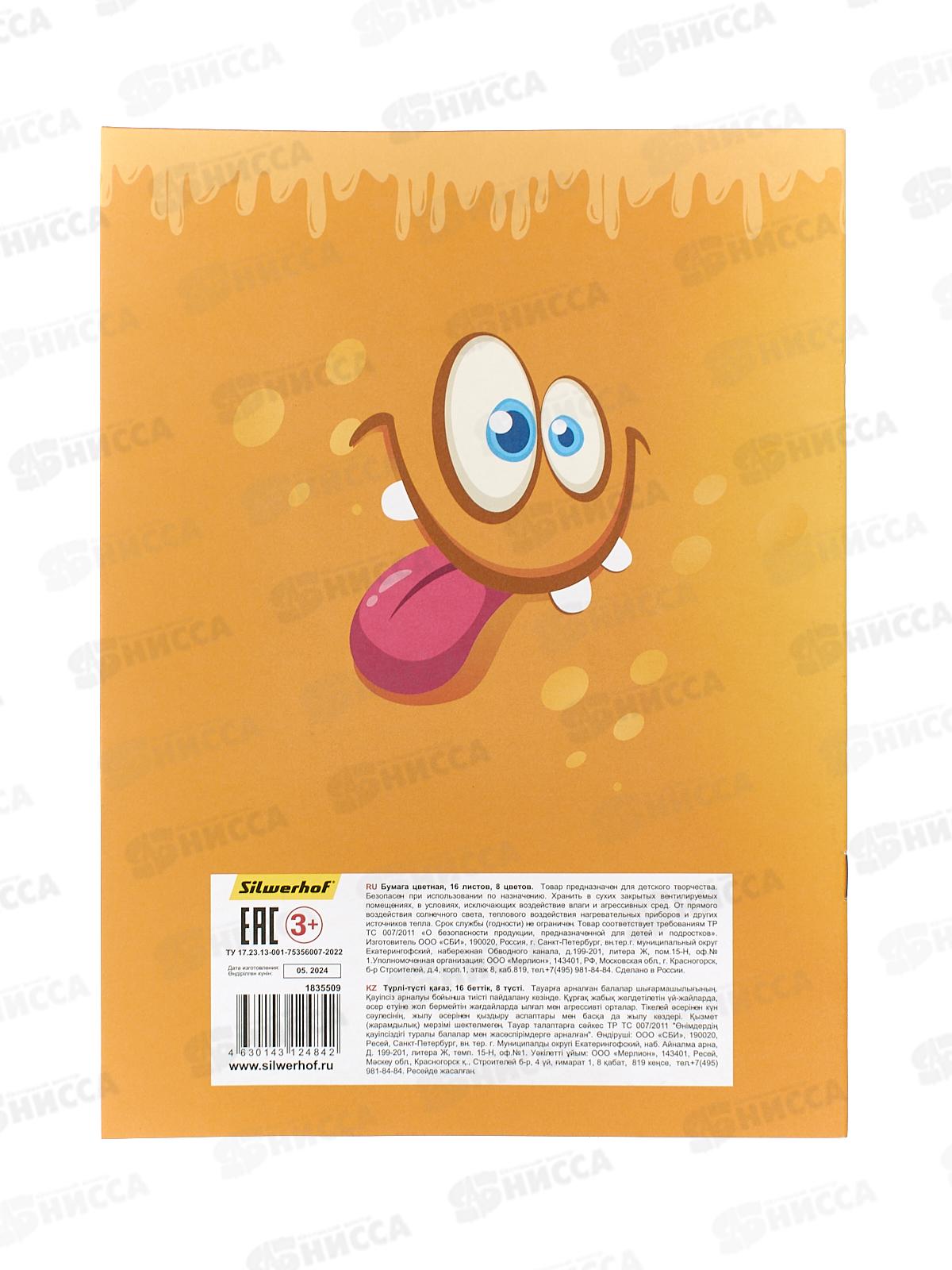 Цветная бум.16л 8цв SILWERHOF одност.А4 Монстрики 1835509